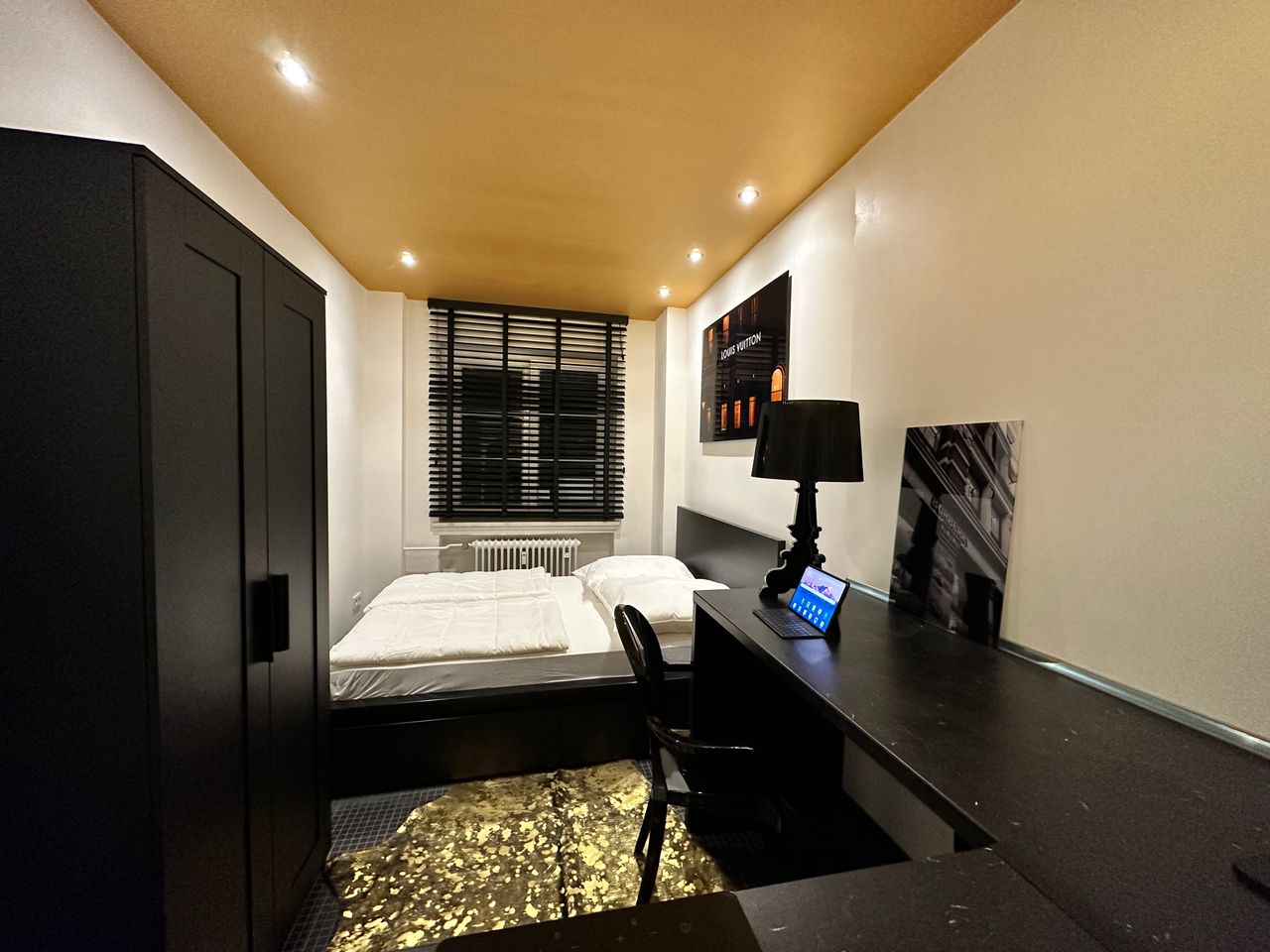 Ausstattung : - Flatscreen TV - Kleiderschrank - Boxspringbett (1,40 X 2,00 m) - Designstuhl / Lampe - Heizung - Ceranherd Herd - Kochutensilien - Toaster - Kühlschrank - Küchentheke mit Arbeitsplatz - Kaffeemaschine