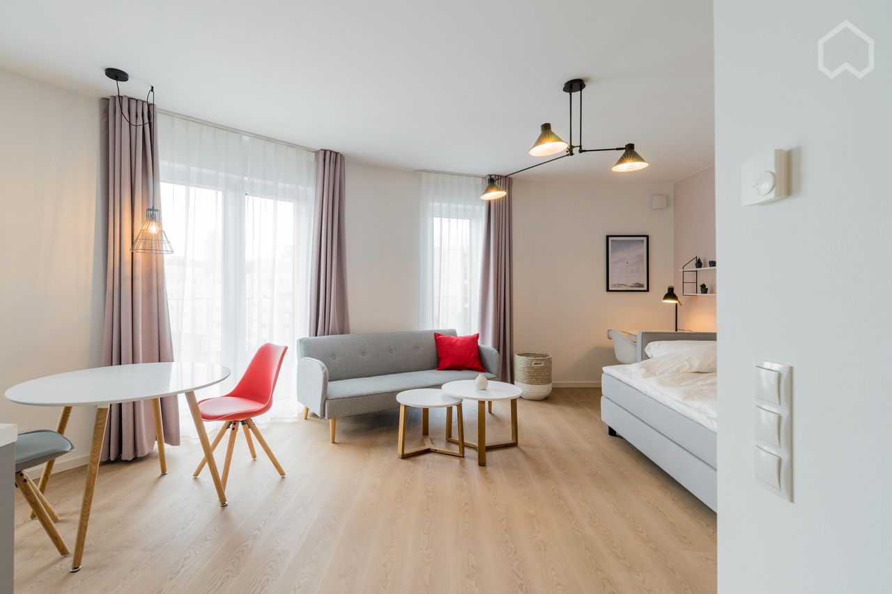 Move in and feel good: The apartment offered here is part of the newly developed residential complex in the center of Charlottenburg. The building, built according to the latest energy standards, comprises a total of 115 fully equipped apartments - tailor-made for project staff, students and all those who make Berlin their short-term home. In addition, there is a restaurant on the ground floor, which offers culinary delights of all kinds. With one of the two modern lifts you can easily transpor...