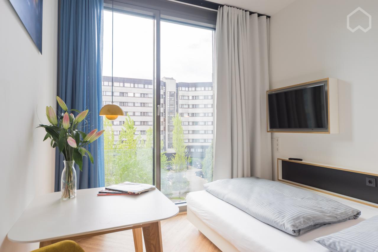 Serviced Apartments - A bit of home for a few months? Whether you are on the road for business, traveling or simply need a pleasant accommodation for a longer period of time: We master the balancing act between hotel and living. In our fully and smartly furnished apartments you get high-quality furnishings and individual service. The studio up to 21 sqm is spacious and has a cozy bed (1.40 m x 2.00 m), a kitchenette and a bathroom. The equipment includes a flat screen TV, dishwasher and micro...