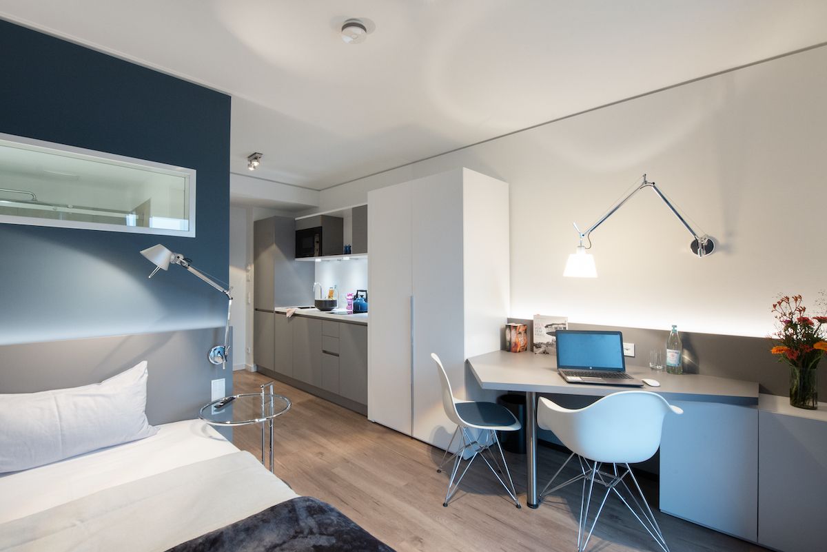 This brand new apartment is located only 2km away from the Belgian Quarter and contains all amenities imaginable for temporary living. Starting with the highest sleeping comfort in a box spring bed by Treca Paris, the fully equipped kitchenette including kitchen utensils by Le Creuset, Juno and WMF, and a beautiful balcony, the apartment offers a living and working space in a stylishly coordinated ambience. With contactless check-in and check-out, you can arrive and depart conveniently and safe...