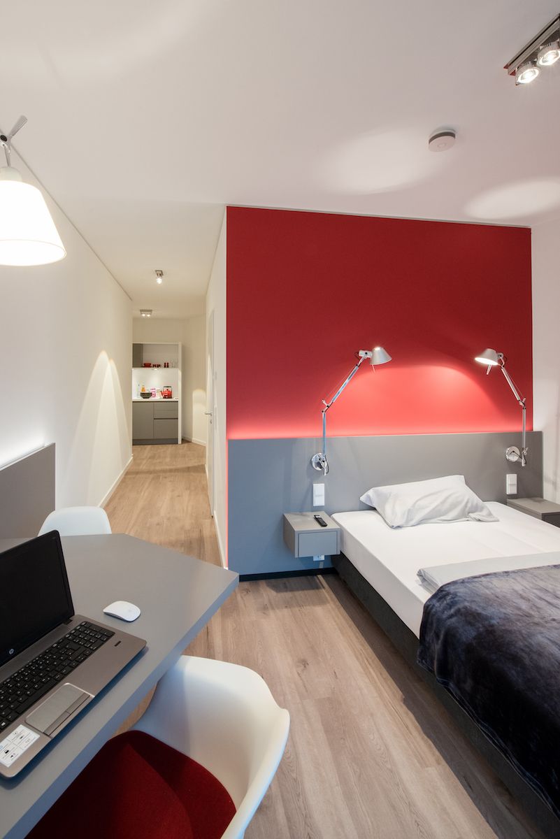 The spacious premium flat, located in a new building, impresses with its high-quality furnishings and all the amenities that are conceivable for temporary living. The box spring bed by Treca Paris, bathroom furniture by Geberit and kitchen utensils by Le Creuset, Juno and WMF offer a special quality feature. With the contactless check-in and check-out, you can arrive and depart comfortably and safely at any time. You can also operate the washing machine and dryer in the laundry room easily via...