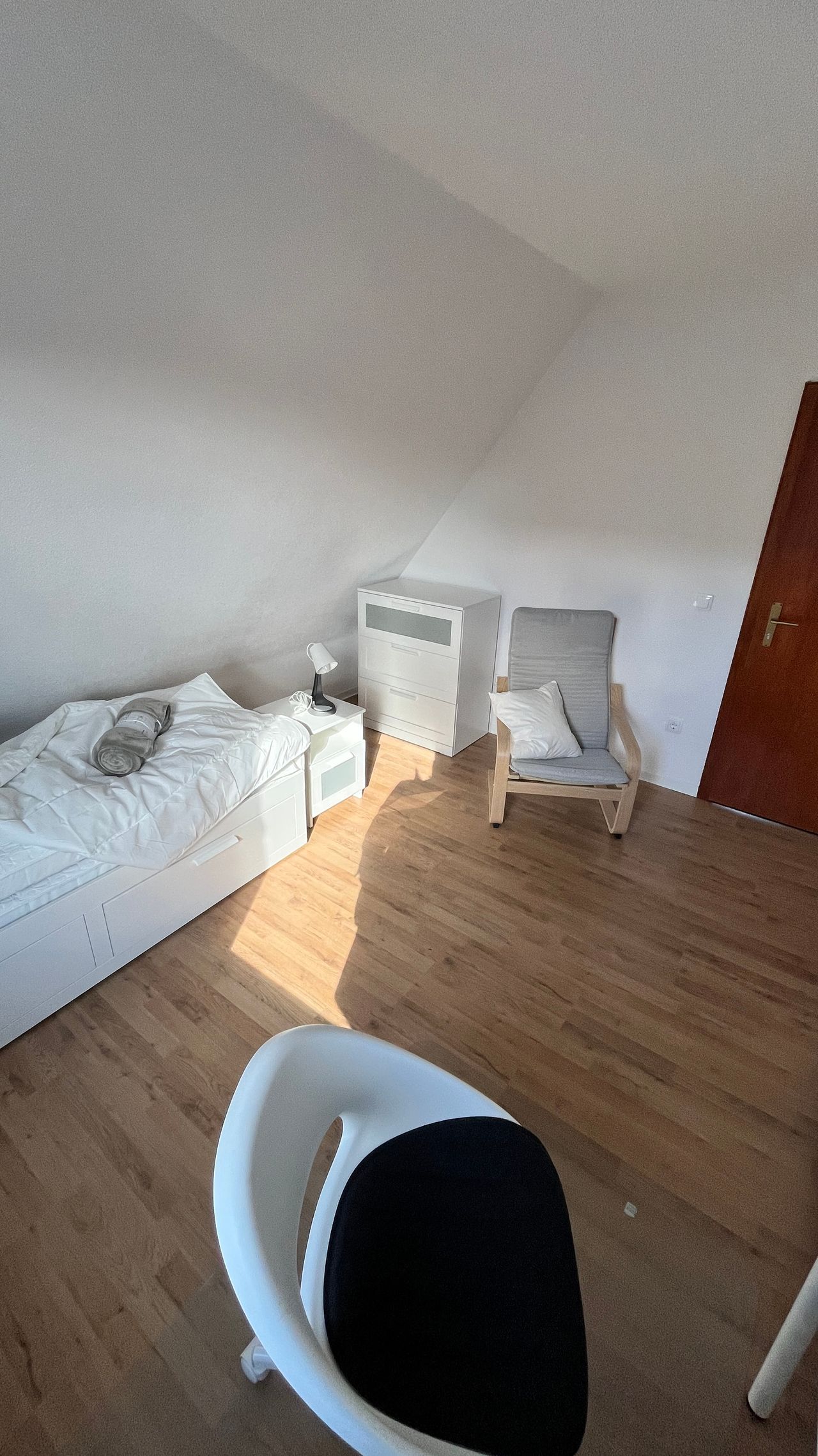 Hello, on 1.4.2025 the beautiful detached house will be completely renovated and rented out as a shared flat with a total of 7 rooms. FIRST OCCUPANCY In addition to 2 bathrooms, a large kitchen with a common room and a large garden, the entire house with over 150 square meters has been modernized. The cosy, furnished room in our freshly renovated and modernized shared flat offers everything you need to feel at home. It is perfectly equipped with a spacious closet, a desk, a comfortable writing...