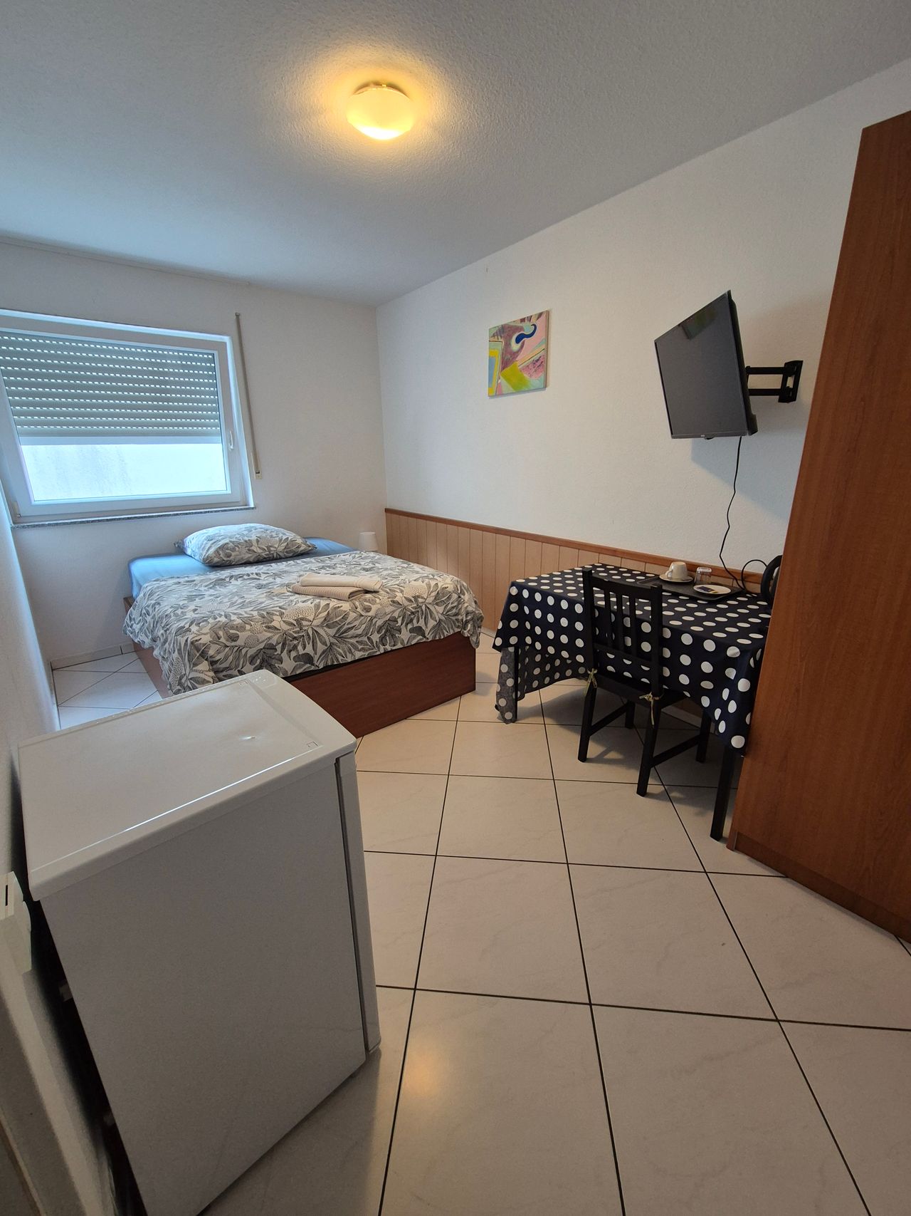 The single room with shared bathroom offers privacy and comfort at an affordable price. The room has a cozy single bed that is perfect for one person. A kettle is available so you can make yourself a cup of tea or coffee at any time. Free WiFi is also available so that you can easily stay connected with the world during your stay. The shared bathroom, which is shared with at most one other room, offers all the necessary amenities such as a shower, sink and toilet and is cleaned regularly to en...