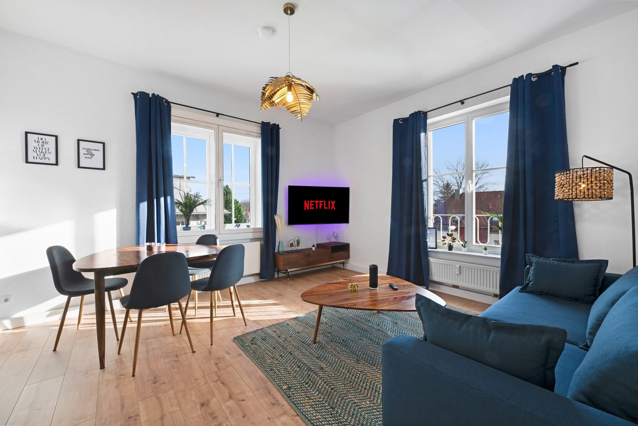 Feel completely comfortable in this luxurious 2 bedroom apartment. It is furnished in a glamor style with modern touches. The 55m² suite contains a KING SIZE HOTEL BED, a SLEEPING COUCH, SMART TV with WIFI, kitchenette and a NESPRESSO coffee machine. The apartment is in a great location in Dresden, near the city center with good connections to public transport. You live in a modern, fully equipped apartment. *2 persons / plus 50,-€ additional person. No broadcasting fee included if registered...