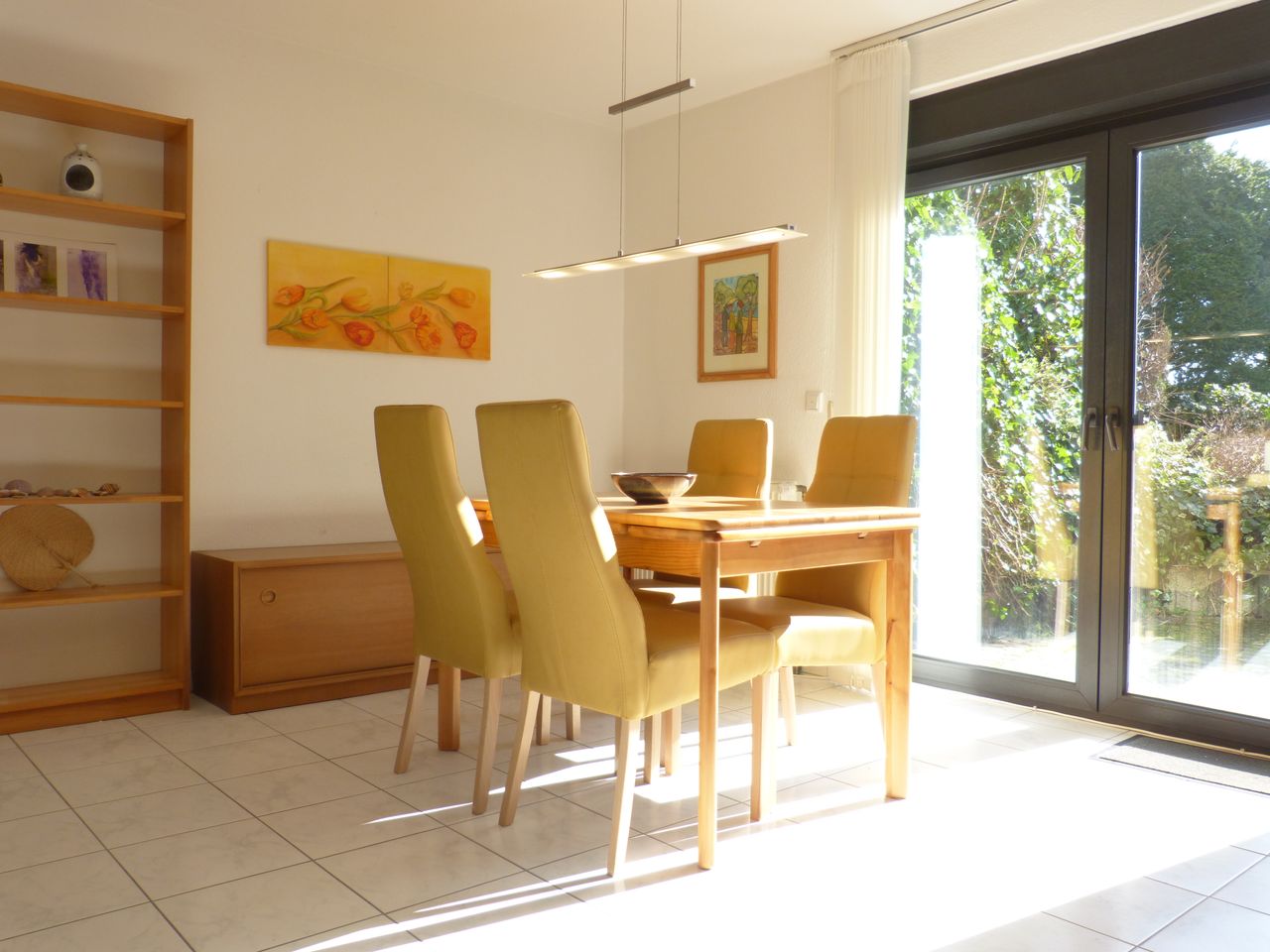 Modern flat as granny flat in a detached house in an upscale green residential area. A parking space belongs to the flat, garage for an extra charge. The living/bedroom offers a sofa bed (160 x 200 cm) with pocket spring core, a dining table, four chairs, a living room table, two armchairs, a flat screen (satellite TV) and WLAN. The modern fitted kitchen is equipped with a 4-plate cooker, refrigerator and coffee maker. Bathroom with shower and WC. Bright hallway with wardrobe and a spacious war...
