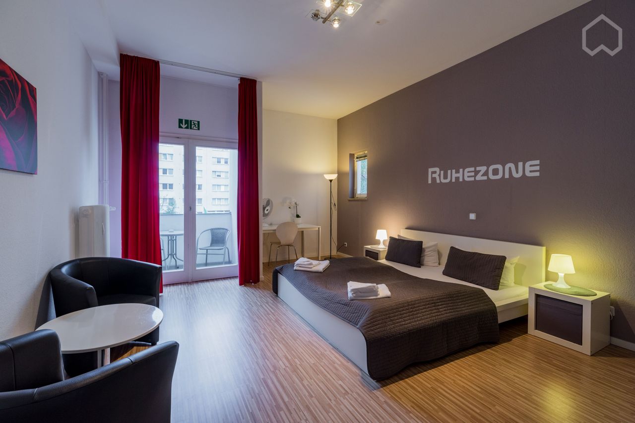 1st floor with lift Size of the flat: approx. 70 m² 2 separate bedrooms each with double bed, living and dining room with sofa bed for 1 additional person, open kitchen with fitted kitchen, 1 shower room with washing machine, balcony. Parking space in the underground car park in the house available on request (subject to availability). underground (U6-Kochstraße) 200 m