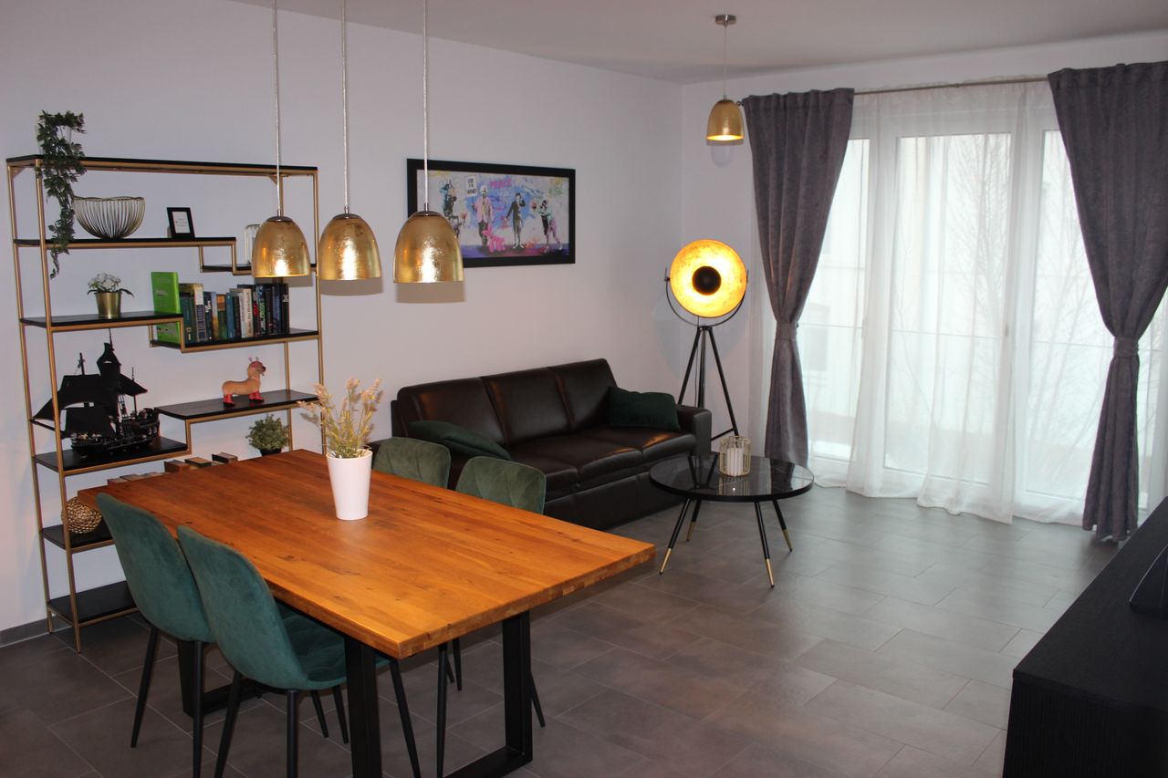 Welcome to your fully equipped, stylishly furnished, bright apartment with ideal connections to public transportation. This ultra-modern apartment on the 1st floor is a perfect retreat in the heart of the city with direct access to all major districts. The unique 2-bedroom apartment guarantees sophisticated living comfort in approximately 52 m² of living space. You have barrier-free access to the apartment, both via the elevator and the ground-level entrance. A spacious hallway leads you to the ...