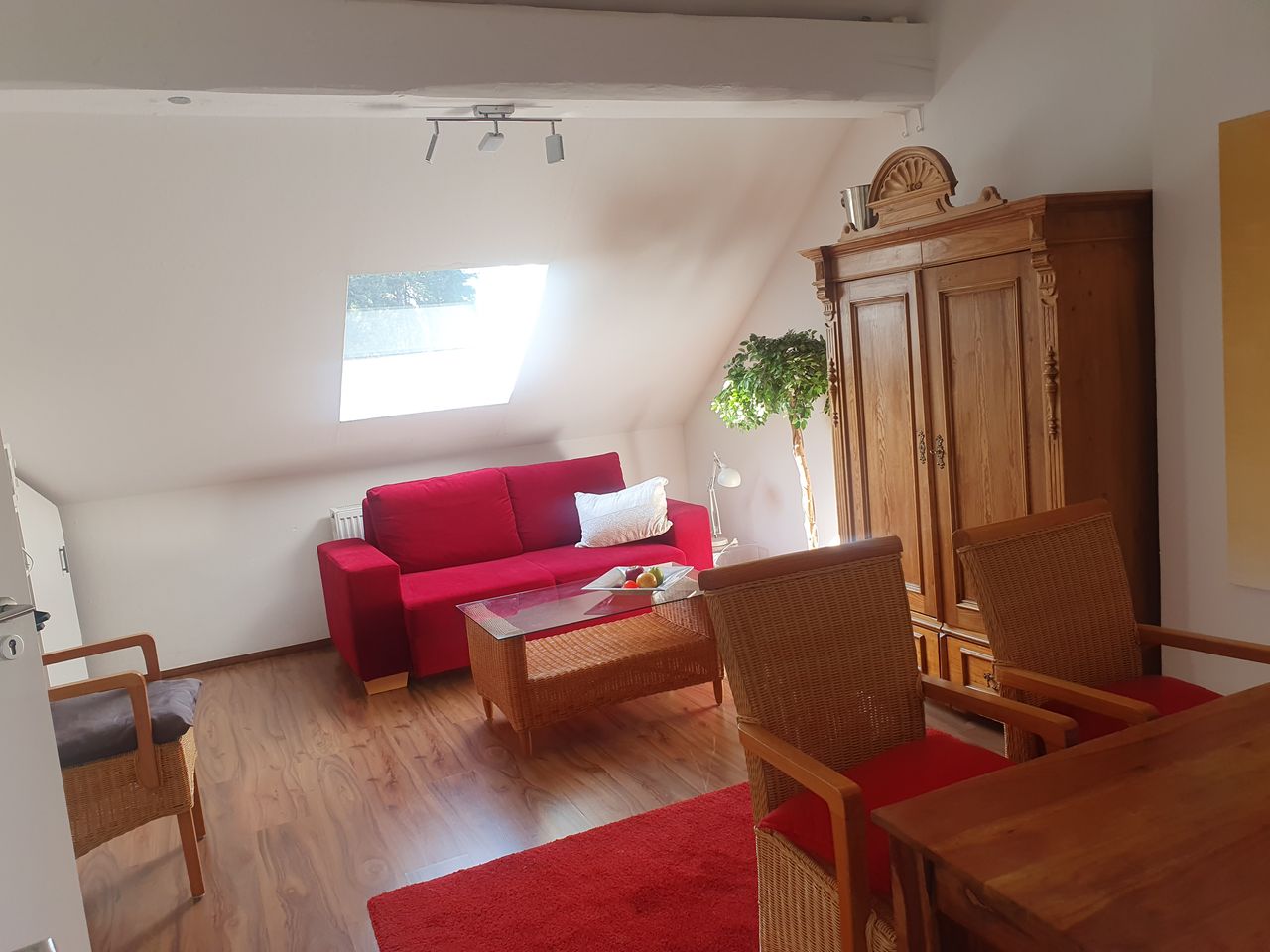 Kuschelige Wohnung im Grünen, stadtnah, Verkehrsanbindung mit Bus Linie 132 alle 10 Minuten im DG mit 1 Kingsizebett 140x200 und einer Schlafcouch, 140x200 im Wohnzimmer, Bad und Küche sind vollkommen eingerichtet und renoviert
