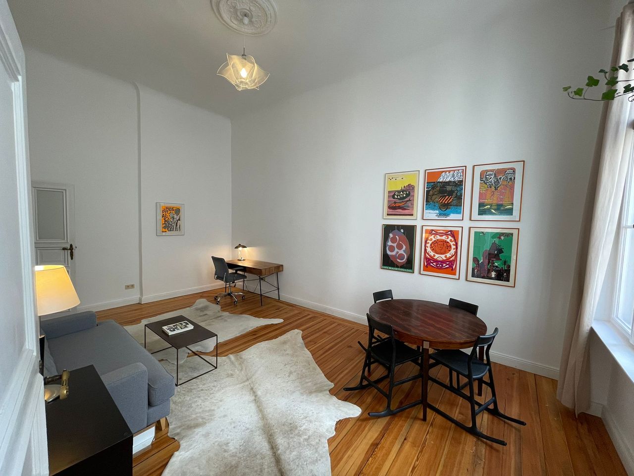 🌿 Historical Altbau Flat in Mitte-Tiergarten – 66 m² | Fully Furnished 🏡 About the Apartment This historical Altbau apartment offers 66 m² of furnished, designed living space in the heart of Mitte-Tiergarten. Located on the 2nd floor of a classic Berlin building, it features original wooden floors and stunning ceilings over 4 meters high, bringing in natural light and a spacious, airy feel. The flat includes a bright living room, a quiet bedroom furnished with a queen-size (double) bed, a mode...