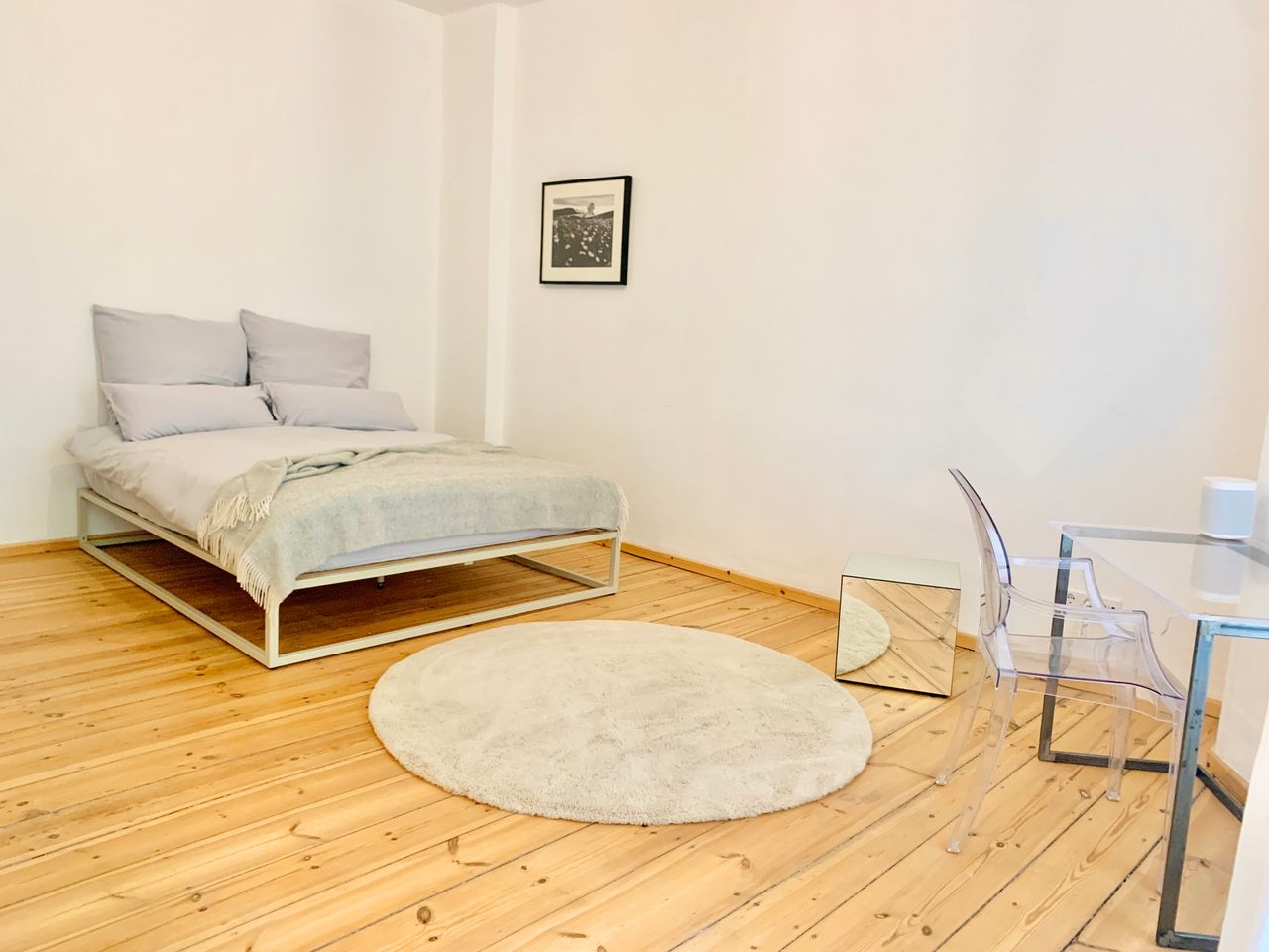 Beautiful new studio apartment in courtyard of listed building in Berlin. Renovated end 2023 and fully furnished with brand new top quality appliances and design award winning furniture. Cosy and stylish, loads of storage space. 3 mins walk from Hermannplatz. U7, U8, M41, M29 and more. Easy connections to all parts of the city, main station and airport. Directly opposite the enormous and beautiful Hasenheide park, 10 mins walk from Berlin's iconic Tempelhoferfeld. Lively area, but peaceful st...