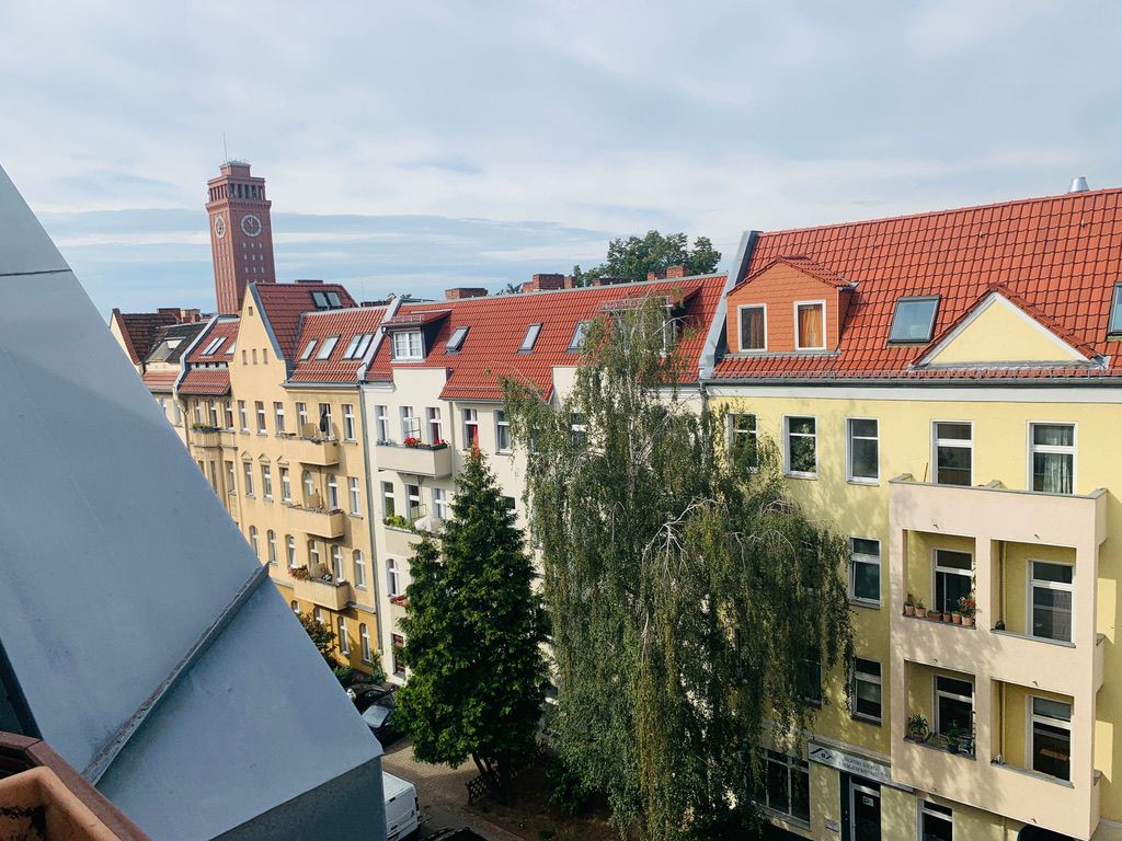 The attic apartment, with 2.58 m ceiling height, is located on the fourth floor of a classic Berlin period building and boasts upscale interiors. The apartment features three inviting, light-filled rooms. The balcony invites you to relax and soak up the sun. A basement storage room is also available. A built-in kitchen with a washing machine, dishwasher, and large refrigerator saves you time and effort upon moving in, so you can start cooking almost immediately. The naturally lit shower room is ...