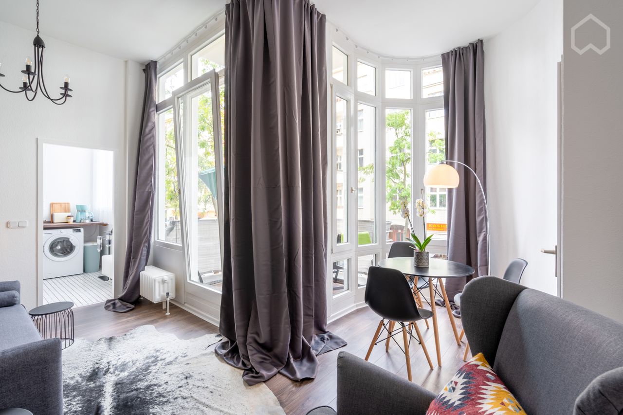 We offer a 1-room apartment of 46 sqm with a separate kitchen, bathroom and balcony in very central location of Charlottenburg, central station and the new BER airport are easely reachable. The appartment is completely furnished offered for rent by private on a temporary basis. The apartment is located in a quiet side street in Charlottenburg on the Mierendorff Island near Charlottenburg Castle. The apartment building was built around 1900 and completely renovated in 2020. The apartment...
