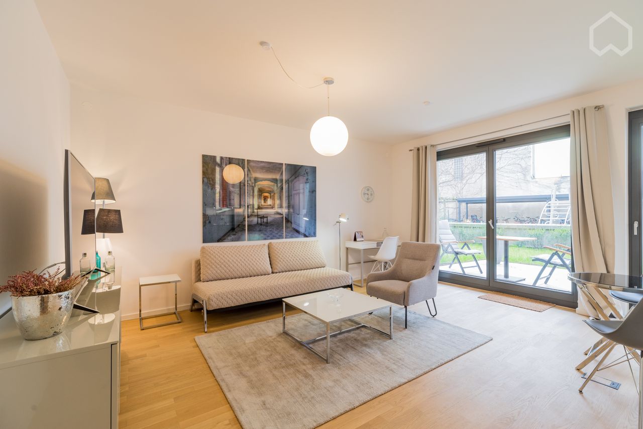 Living/dining room with sofa bed 160x200, bedroom with double bed 160x200 (boxspring bed), smart tv available and access to a 35m2 garden. 110 EUR parking space available on request/liability insurance mandatory.