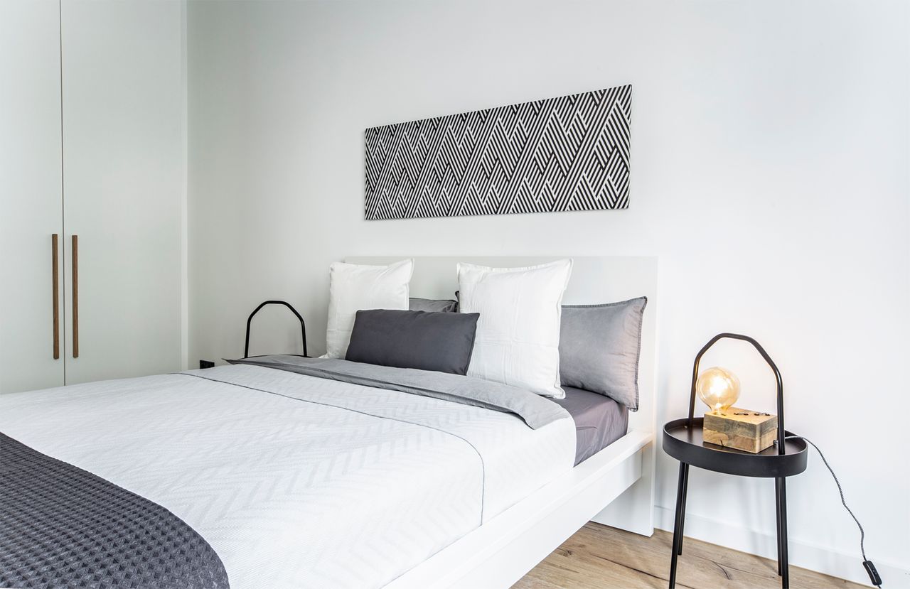 All rooms are fully equipped and offer everything for everyday use. The kitchen-living room has cooking utensils, an oven, ceramic hob, kettle, extractor hood, a coffee machine and a table-chair combination. The living area is furnished with a comfortable couch with a coffee table and a smart TV. The bathroom is characterized by a balanced mix of classic elements and modern design. The hallway leads to the bedroom, which is equipped with a large built-in wardrobe, a bed (140cm x 200cm) and a si...