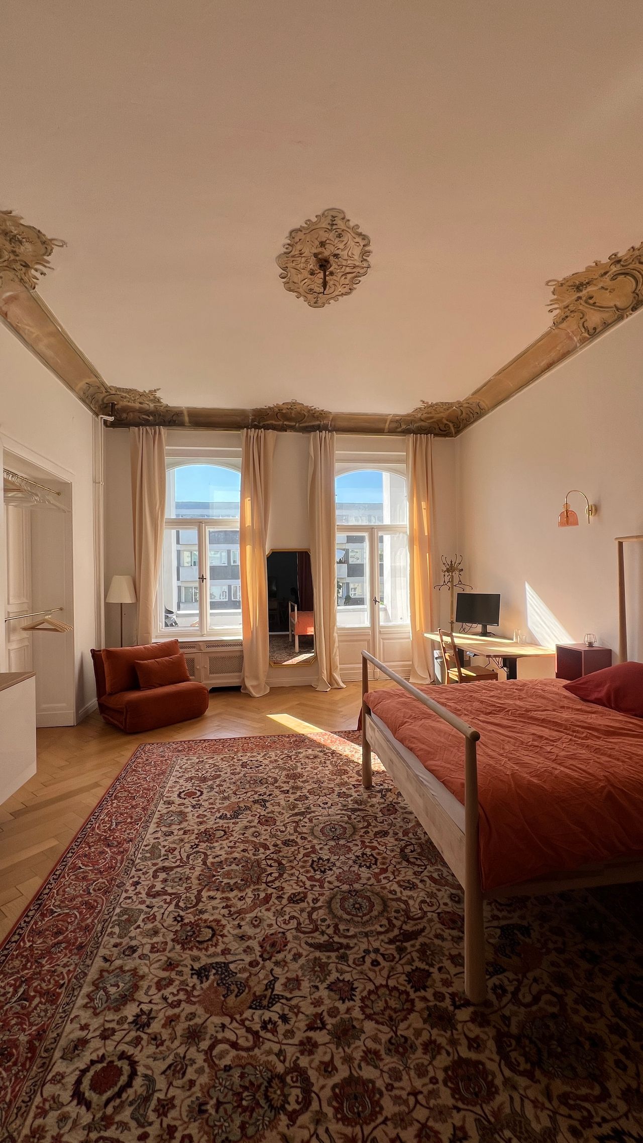 This extraordinary apartment, located on the 3rd floor of a prestigious Berlin Altbau building, combines the sophistication of historic architecture with the comfort of modern living. With 330 m² of living space, 4-metre-high ceilings, original stucco details, wooden parquet floors and light-filled rooms, it is a rare gem in the heart of the city—ideal for corporate stays, embassies, film productions, creative residencies or exclusive long-term living.