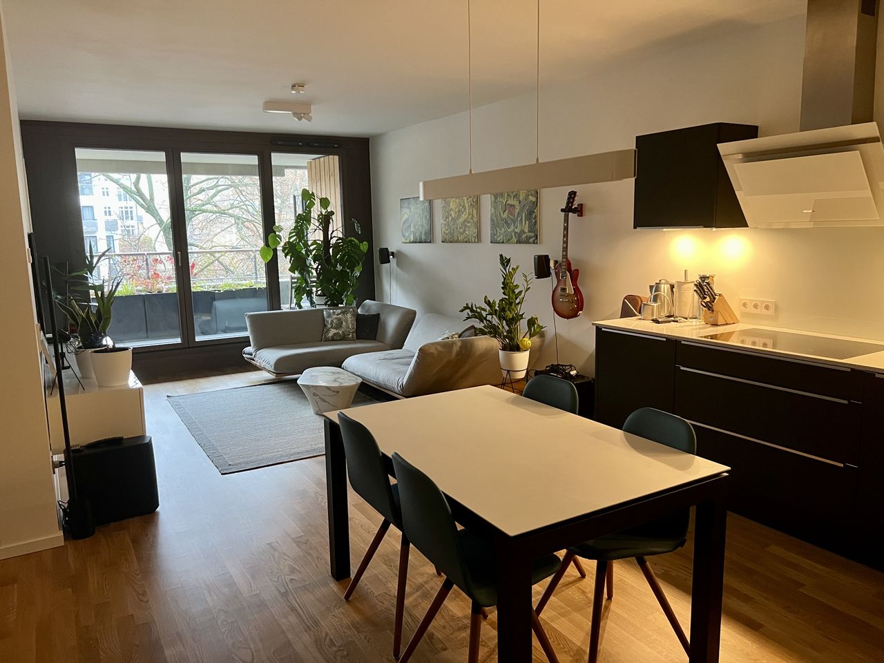 - Fully equipped kitchen - Box spring bed (180cm) - Height-adjustable desk (1.80m), working in standing position possible - 28-inch PC monitor included - 65-inch 4k OLED TV - Denon sound system 5.1 home cinema, Spotify Connect - Nespresso coffee machine and milk frother - Wine cabinet - HUE lamps - PlayStation 4 - Supermarket: 3min (260m): REWE and Netto - Tram: 5min (350m): Prenzlauer Promenade/Am Steinberg 6 min (450m): Stahlheimer Str./Wisbyer Str. (Berlin) S/U Bahn: 1.6km: Schönhauser Al...