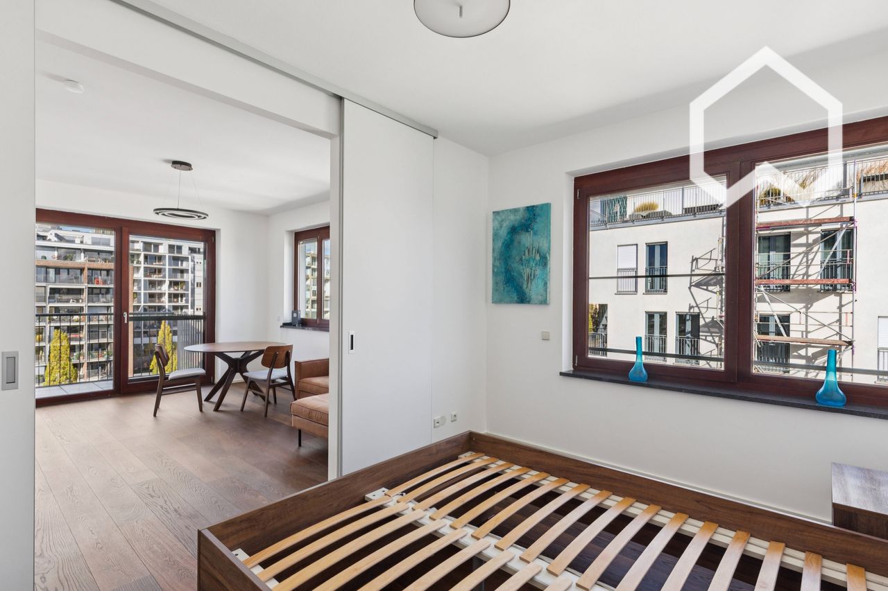 Looking for an exquisite and fully furnished apartment in Frankfurt am Main? This 55m² apartment on the Main Island could be your dream property! With a unique view of the skyline and high quality furnishings, it is a true gem. Apartment Highlights: Location: this apartment is located on the Main Island, which offers you not only peace and quiet, but also a first-class connection to the vibrant city (10 min walking distance) and airport of Frankfurt am Main (15 min driving distance). Luxury k...