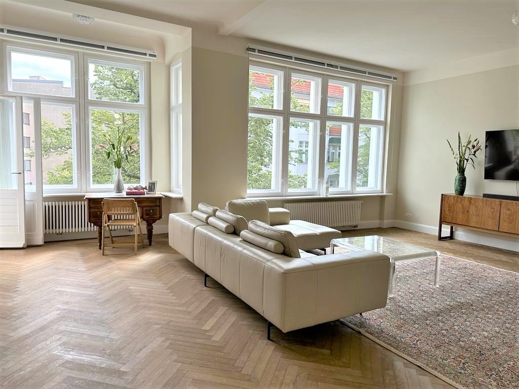 This extravagant apartment has recently undergone a complete refurbishment by the same architect as the Acne and Canada Goose stores in Berlin. This light and airy apartment is situated on a very quiet side street of the well known shopping street Kurfürstendamm, with all of its fashionable boutiques and upmarket restaurants. It offers a lift, 2 luxury bedrooms with Bo Concept double beds. One of the bedromms is ensuite with fitted wardrobes, a 60 sqm living room perfect for entertaining with d...