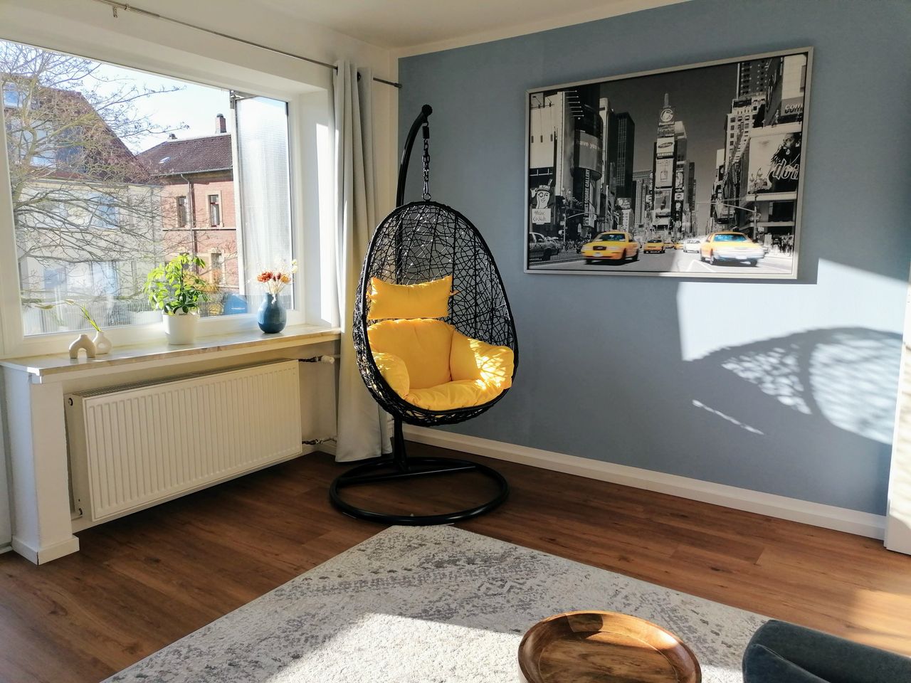 ☆ Feel good at M-OASE ☆ This 2-room apartment, furnished in a stylish blue design, is your place of well-being on your travels. It is close to the center in the northern part of the city. The city center can be reached in 15 minutes on foot. Ideal for 2 people or a small family. It is comfortably furnished and fully equipped. Parking for cars is possible directly next to the house in an underground car park and is free of charge. Please note the entrance size: height 185cm x width 240cm. ☆ 1 b...