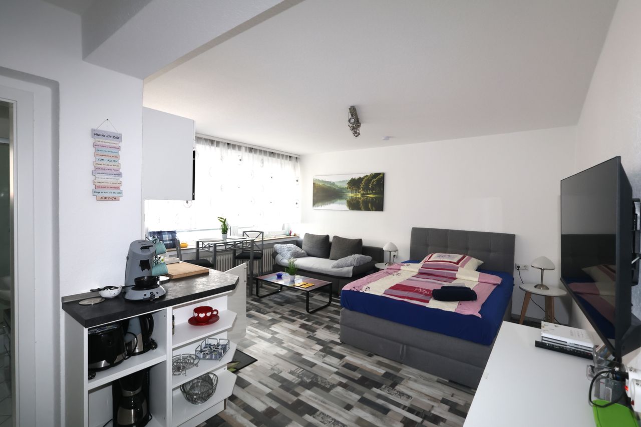 Modern & Fully Furnished City Apartment with Balcony in Prime Downtown Location Welcome to your new home! This high-quality, fully furnished studio apartment offers everything your heart desires – ideal for singles, commuters, or anyone looking for a stylish city residence. Apartment Highlights: 🛏 Combined Living & Sleeping Area The spacious open-plan area features a comfortable box spring bed, a cozy sofa, and a modern flat-screen TV. Bright laminate flooring in a wood design adds a homely ye...