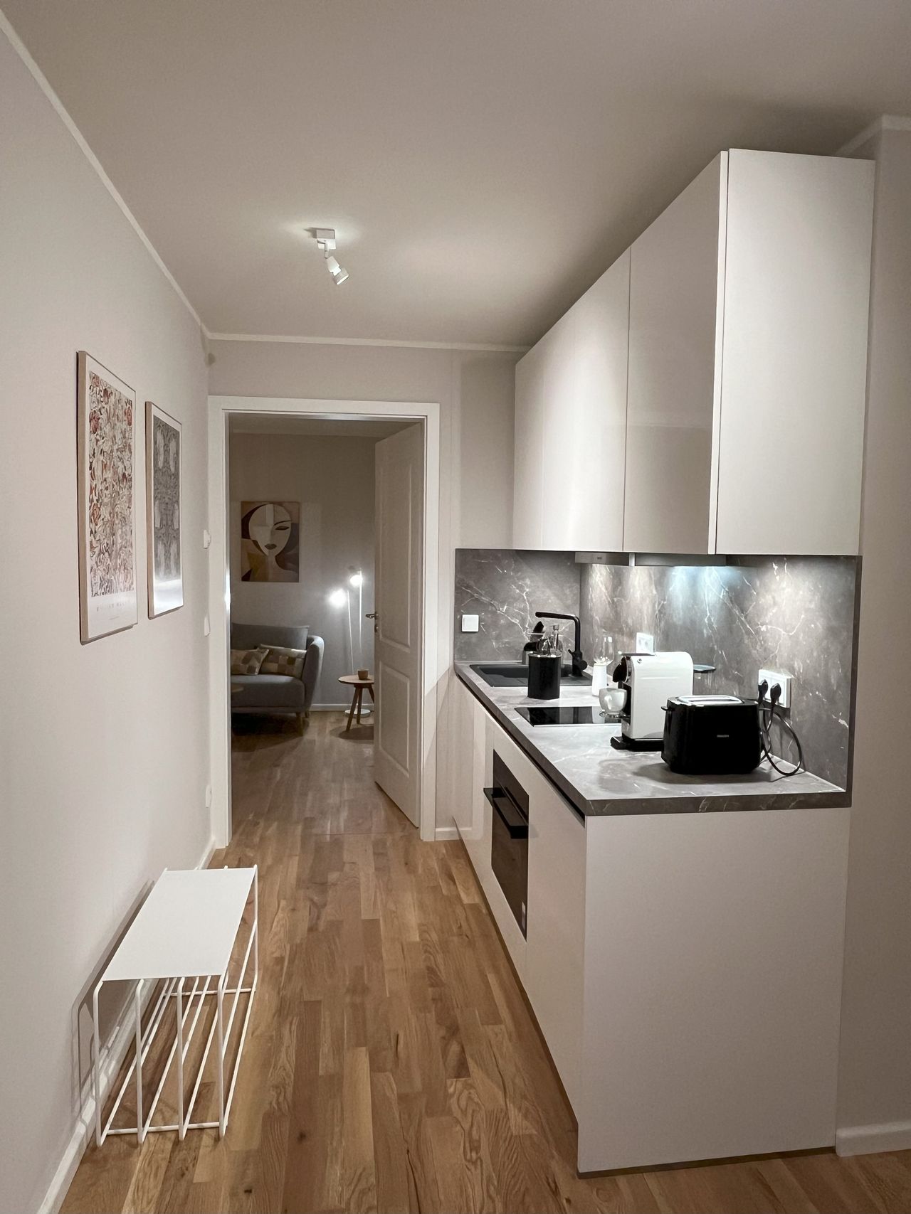 Welcome to your stylish new home, located directly across from the iconic Sanssouci Palace Park in the heart of Potsdam’s UNESCO World Heritage district. This newly opened, modern apartment combines comfort, functionality, and elegant design. Inside, you’ll find real wood parquet flooring, a double bed, a seperate study room, a premium kitchen, a spacious modern bathroom, a wall-mounted smart TV, and many other conveniences. The dining area seats two comfortably. The fully equipped kitchen fea...