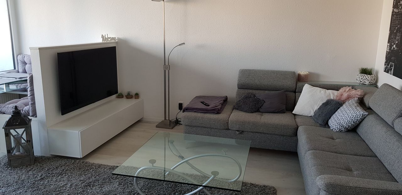 The modern, bright apartment has been fully renovated and newly furnished. It is well equipped and offers everything you need for a comfortable stay: Modern bathroom with spacious shower Fully equipped kitchen Generous living area Sleeping area with practical fold-away bed (140 x 200 cm) Pull-out sofa bed for additional guests Large balcony on the 7th floor with a beautiful view The apartment is centrally located in Alt-Homberg, in a quiet residential building. A video-monitored parking ...