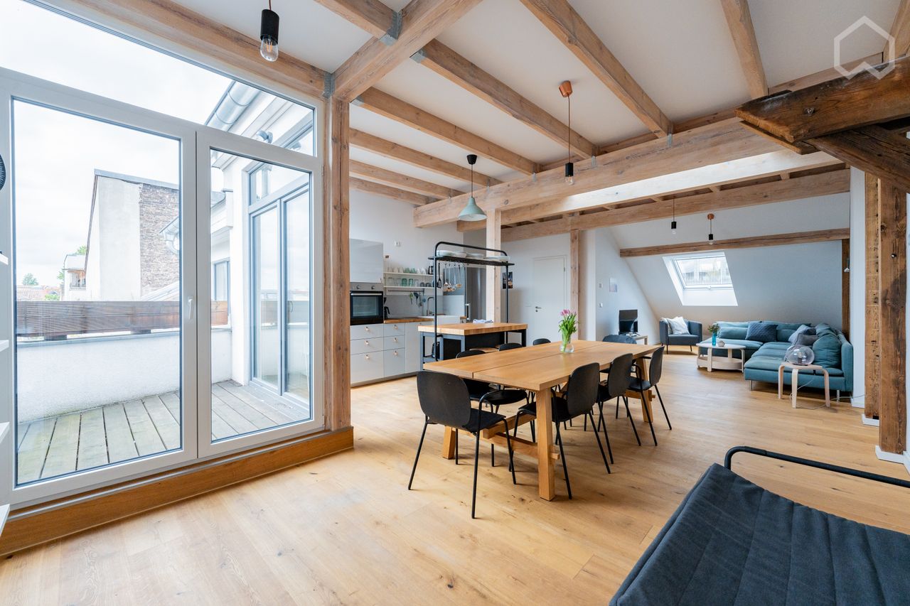 Very nice and newly furnished 3-room apartment in Kreuzberg. The beautiful apartment near the Paul Linke Ufer and is a perfect place to explore the best and "colorful" areas of Berlin. The sunny apartment has a large living room with open kitchen and adjoining terrace. Minimum stay is 93 nights This beautiful 3-room apartment is located on the top floor and is newly renovated. The sunny south-facing terrace invites you to linger. It has two spacious rooms, a living room with an open kitchen, a...