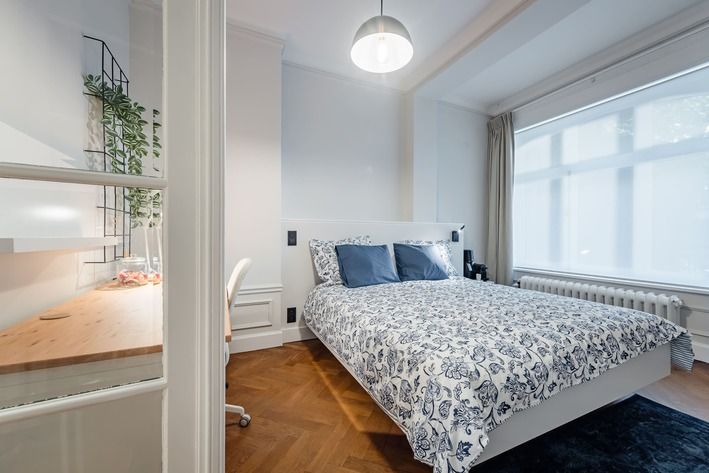 This 21 m² room on the ground floor of a beautifully restored house in Uccle is ideal for professionals. It features a comfortable double bed, ample wardrobe and a compact desk for working, alongside a private bathroom. High‑speed Wi‑Fi is included. Residents share spacious common areas including a dining room, living room and fully equipped kitchen. Uccle’s green ambience and access to the Bois de la Cambre make it perfect for jogging or weekend walks. Trams connect you quickly to the city cent...