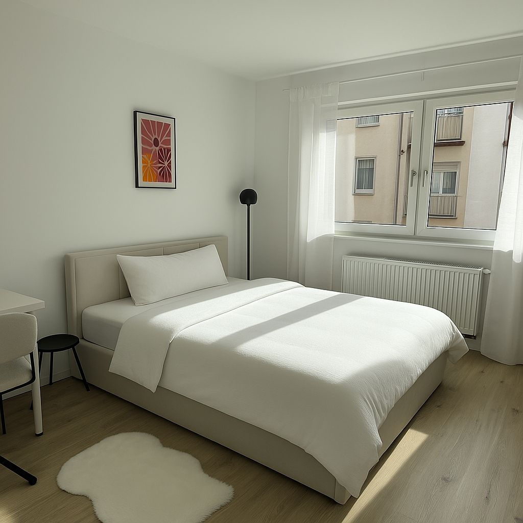 This stylishly renovated 1-room apartment in the heart of Mannheim (T6 33) offers 32 sqm of modern living comfort. Equipped with a high-quality fitted kitchen, a comfortable 160 cm wide bed, a spacious wardrobe, and an electric desk, it’s perfect for relaxing evenings and productive home office days. Additional amenities include a smart TV with Netflix access, a brandnew kitchen with a dishwasher and a newly renovated bathroom with a washing machine. Ideal for professionals or commuters looking ...