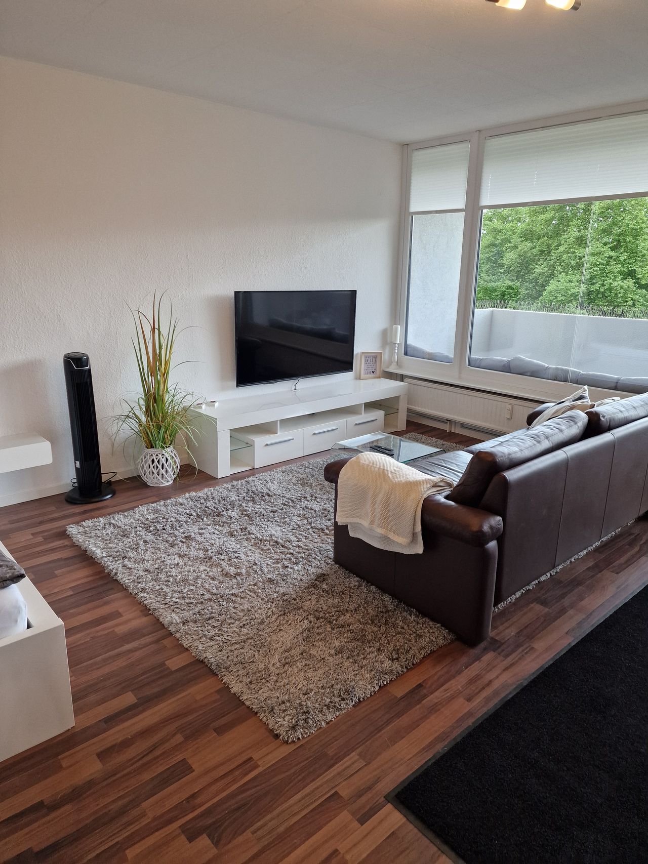 The modern, bright apartment has been fully renovated and newly furnished. It is comfortably equipped and offers everything you need for a pleasant stay: Modern bathroom Fully equipped kitchen Spacious living area Sleeping area with double bed (140 x 200 cm) Additional bedroom with single bed (90 x 200 cm) and its own TV Large balcony overlooking the well-kept garden The apartment is located in a central yet quiet residential building in Alt-Homberg. A video-monitored parking space is av...