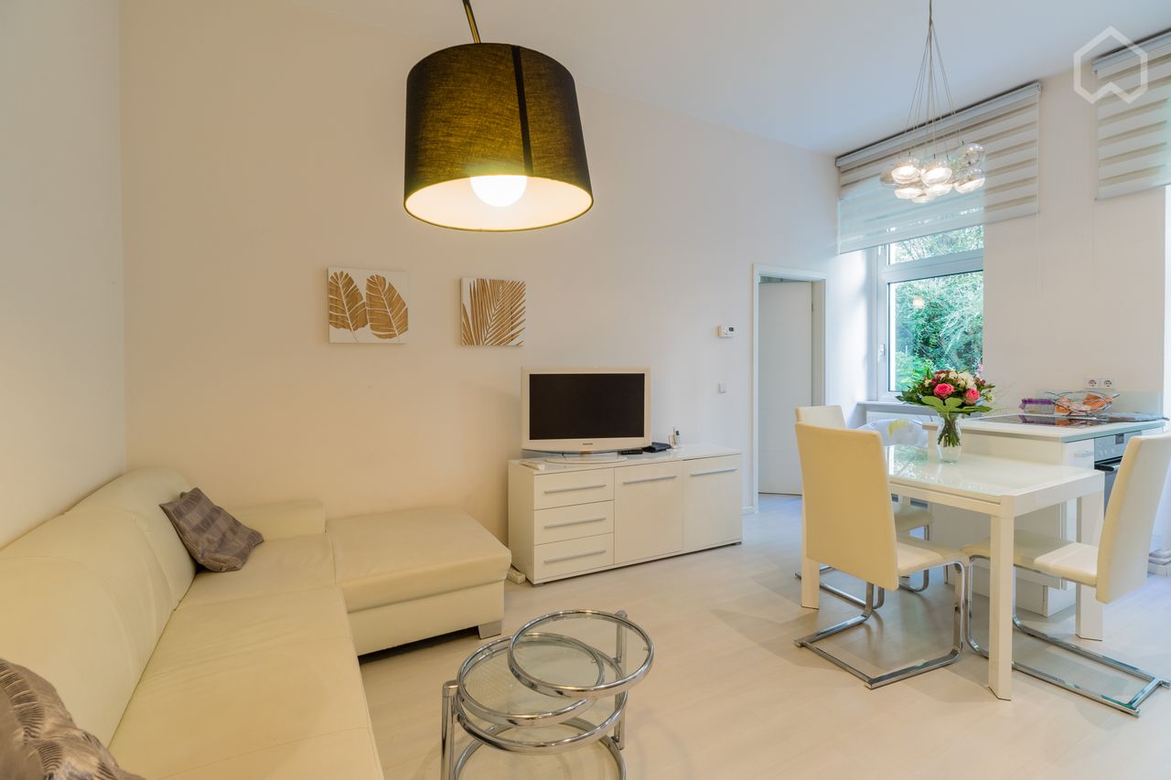This beautiful and modern apartment with a whirlpool is located at Savignyplatz with many restaurants, cafes, a supermarket and much more. Zoo and Wilmersdorfer Straße (shopping) are in walking distance. A few steps to the train station and the S-Bahn will take you anywhere from Potsdam over Hauptbahnhof (Main Station), Hackescher Markt, Friedrichstr., Alexanderplatz to Warschauerstr. The apartment is equipped with an open kitchen and natural stone floor in the bathroom. The green patio will ins...