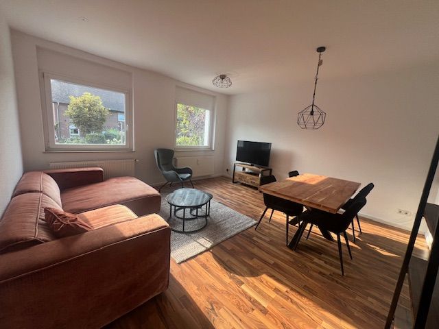 Welcome! We are excited to offer you a unique opportunity: a newly furnished apartment featuring 2 bedrooms with king-size beds, a living room, a fitted kitchen, and a bathroom! This tastefully designed apartment is located on the raised ground floor of a well-maintained multi-family building in Cologne-Wahn. With an area of approximately 86 sqm and a bright bathroom with a bathtub, it provides ample space and comfort. A private parking space is conveniently available right in front of the bui...