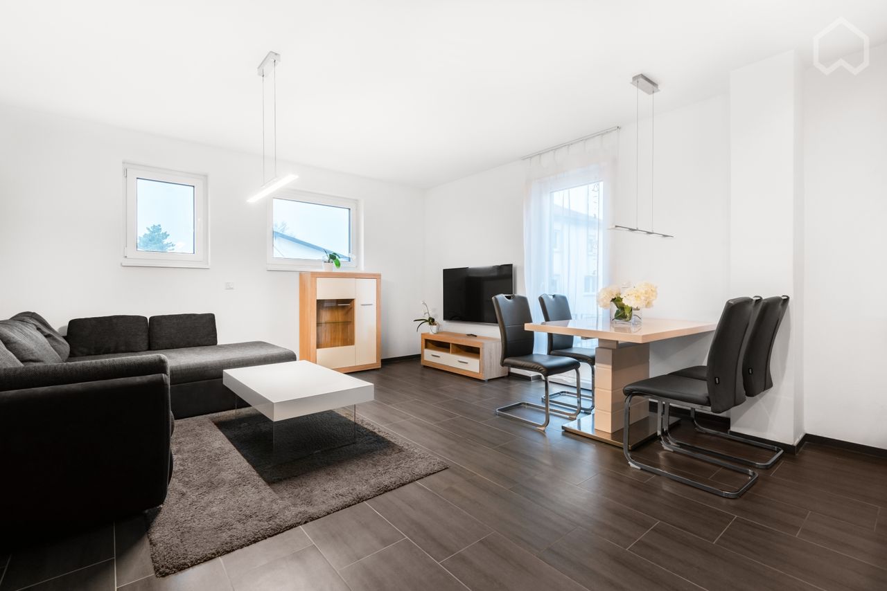 🇩🇪 Der schöne Neubau mit 11 Wohneinheiten liegt in absolut ruhiger Lage in der zweiten Reihe zur Straße und wurde 2017 erbaut. Das hochwertig ausgestattete Business-Apartment ist modern möbliert inkl. einem Samsung 55 Zoll SmartTV. Das Objekt wurde in energieeffizienter Bauweise (KfW 70) erstellt. - Wohnung 4a 1.OG.: 2 Zimmer, 55,84qm, Schöner Balkon/Dachterrasse ca. 13 m2 Fliesenboden, offene Einbauküche in weiß Hochglanz mit Geschirrspüler ,Tageslichtbad mit Fenster luxuriös, elektrisch...