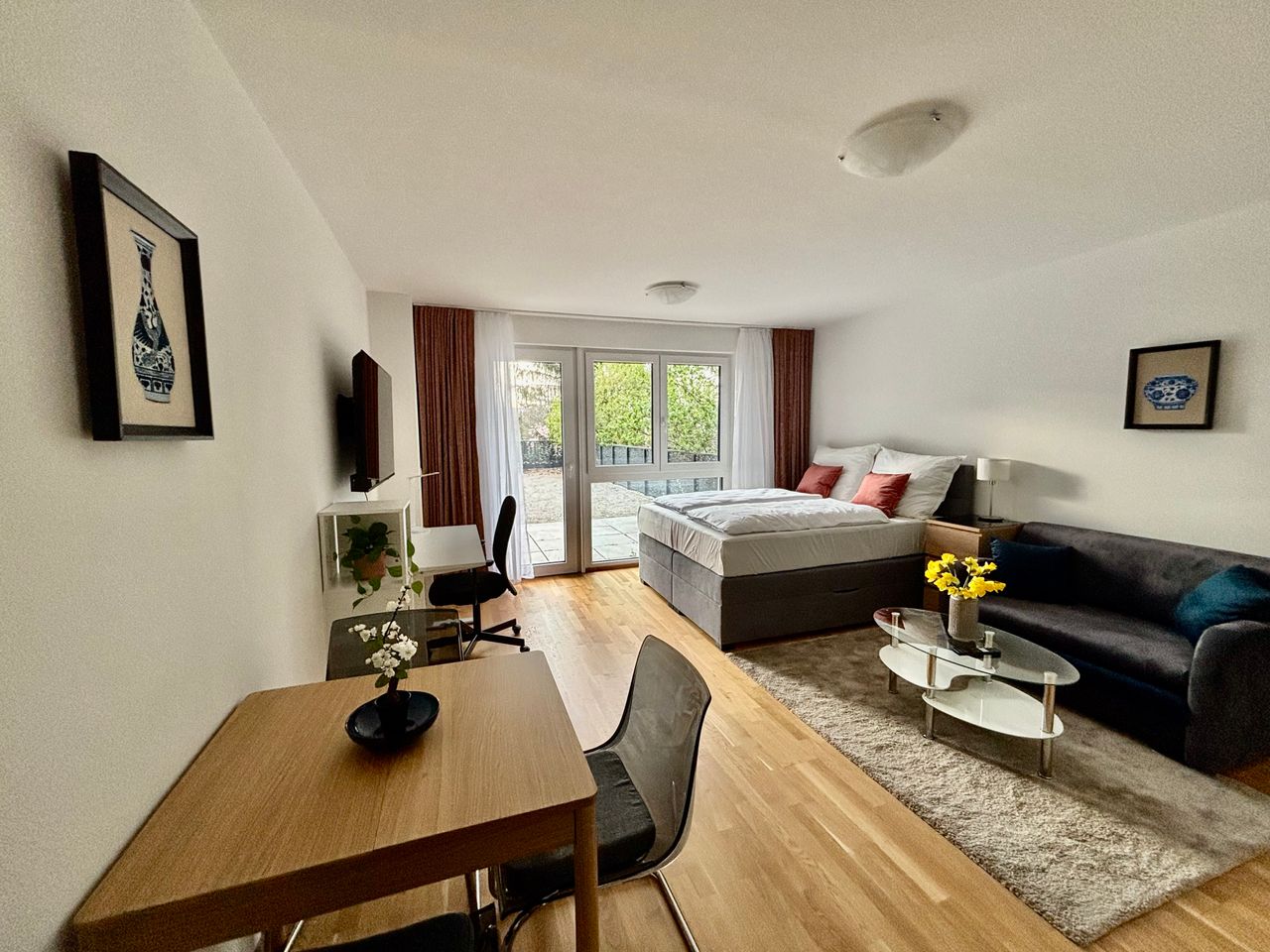 This modern and fully furnished studio apartment with terrace is located in a new residential building in Vienna Donaustadt and offers around 34 m² of high-quality living space. The apartment is move-in ready and ideal for professionals, expats, or business travelers looking for a comfortable temporary home in Vienna. Despite its excellent connectivity, the apartment is quietly situated facing the inner courtyard, providing a peaceful and relaxed living environment. Located on the 1st floor wit...