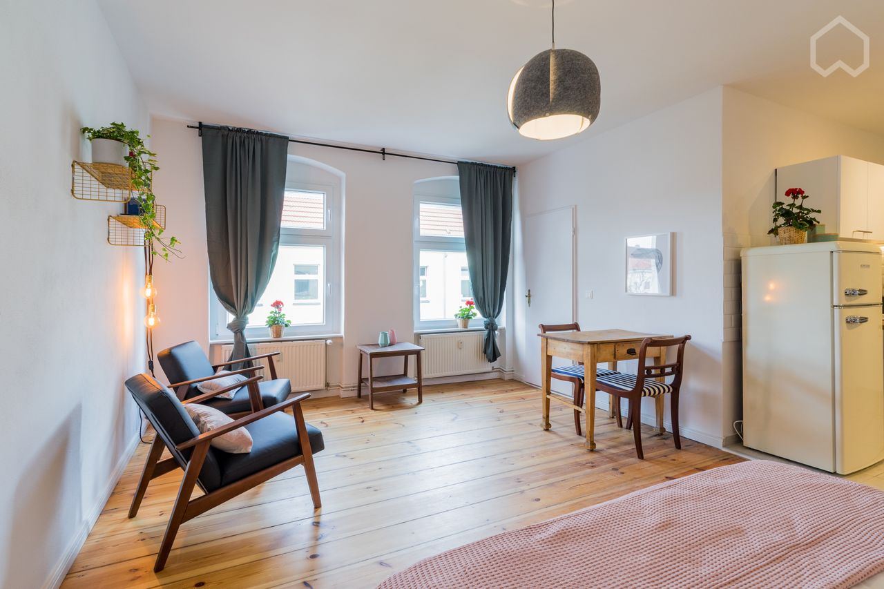 We are excited to offer you our beautiful studio in the Wiclefstraße in Berlin-Moabit, one of Berlin’s up-and- coming districts. The minimum rental period for the studio is two months. The studio is located in a quiet residential area with the Wilhelminian style building (“Berliner Altbau”) consisting of three building parts: a front building, a central house and a garden house. Our studio is on the 4th floor in the garden house which means it is both bright and nice as well as quiet. The houses...