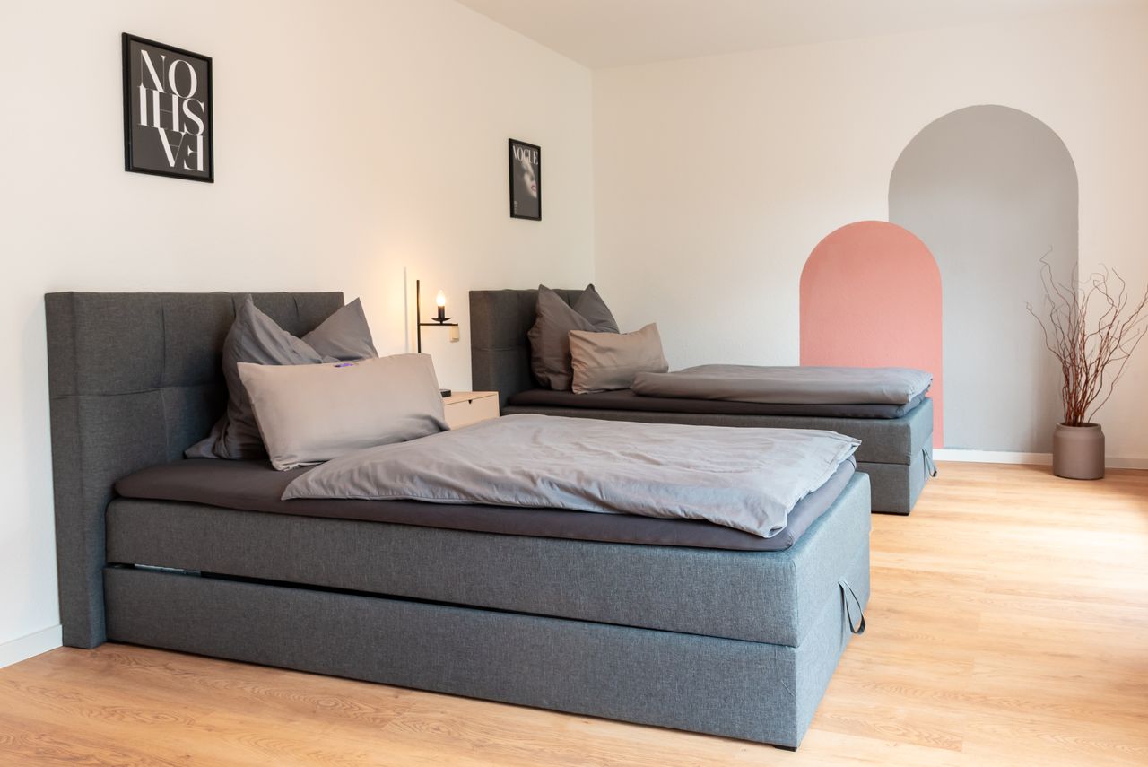 Diese wunderschöne Unterkunft bietet 3 Einzelbetten als Schlafmöglichkeit. Am großen Esstisch ist genug Platz für 4 Personen. Die Wohnung verfügt über eine Waschmaschine und eine vollausgestattete Küche mit Geschirrspüler.