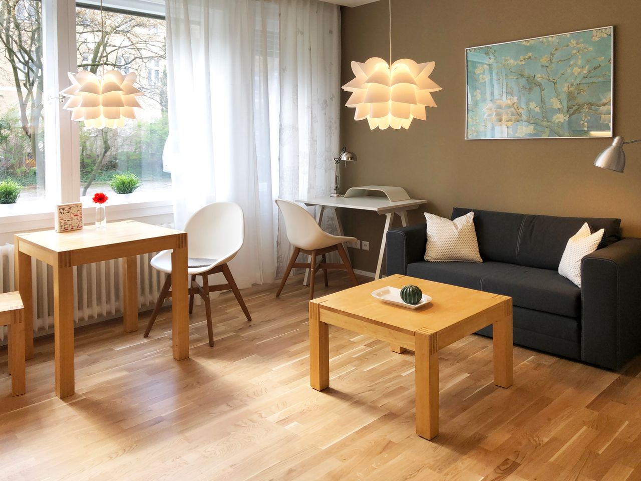 *English Description Below Objektbeschreibung: Das denkmalgeschütze sehr gepflegte Wohnhausensemble Baujahr 1958 von Max Taut besticht durch seine moderne zeitlose farbenfrohe Architektur und ruhiger Seitenstraßenlage. Die Wohnung liegt im Erdgeschoss. Kürzlich vollsaniert bietet die Wohnung eine sehr moderne helle Wohnatmosphäre ausgerichtet zum durchgrünten Innenhof. Ausstattung: 30 m², 1-Zimmer-Wohnung, vollständig möbliert, vollständig eingerichtete separate Küche, Bad mit Waschtisch, ...