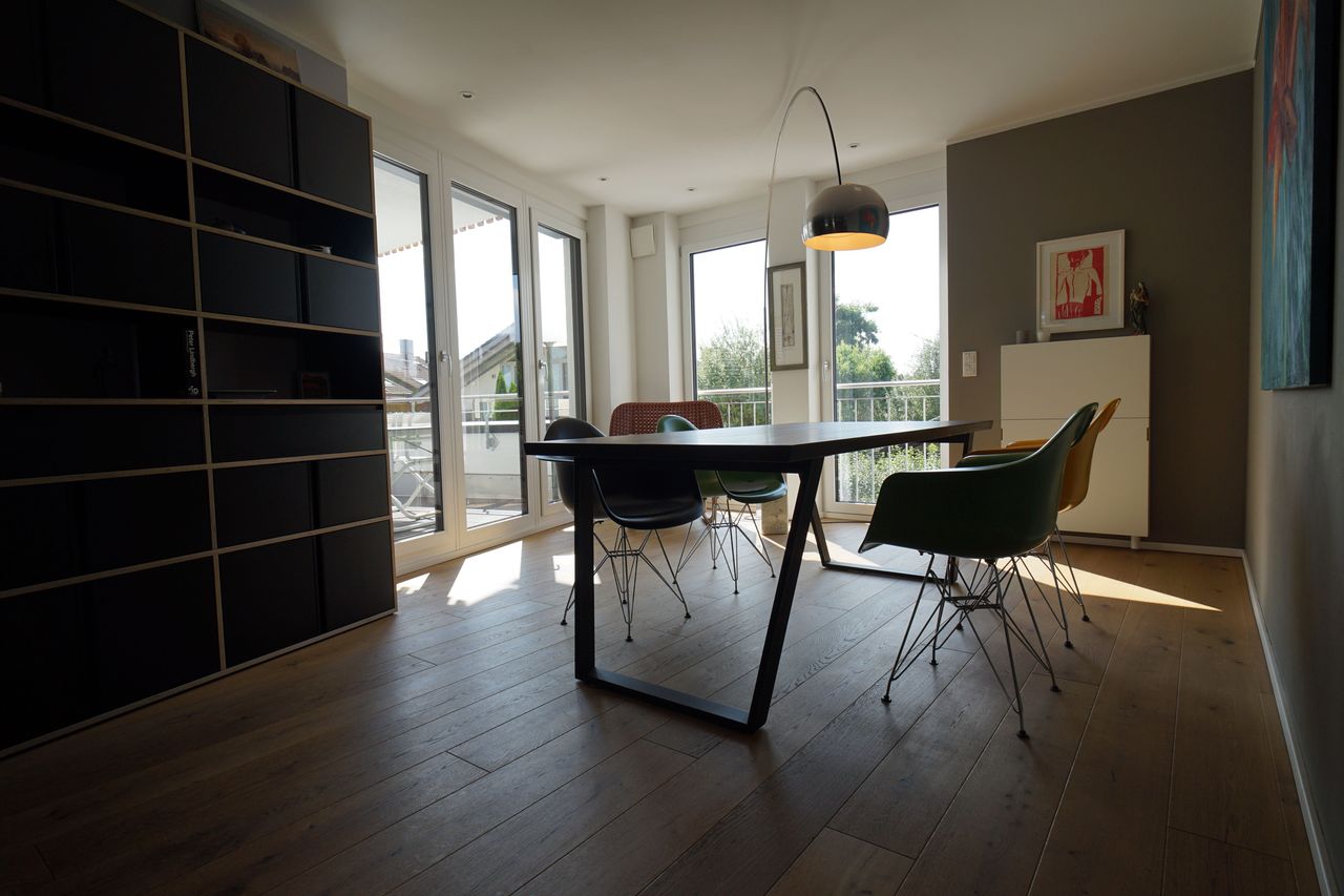is special accommodation has a style all of its own. In a small new building (2020) in the Harthausen district, built with only 5 units, this luxury flat with 2.5 rooms, mountain view and sunny roof terrace is located on the 1st floor and has a 22 sqm roof terrace with views from east to west. The high-quality furnishings and stylish decor provide the feel-good flair to make you feel at home in Bad Aibling. Translated with www.DeepL.com/Translator (free version)