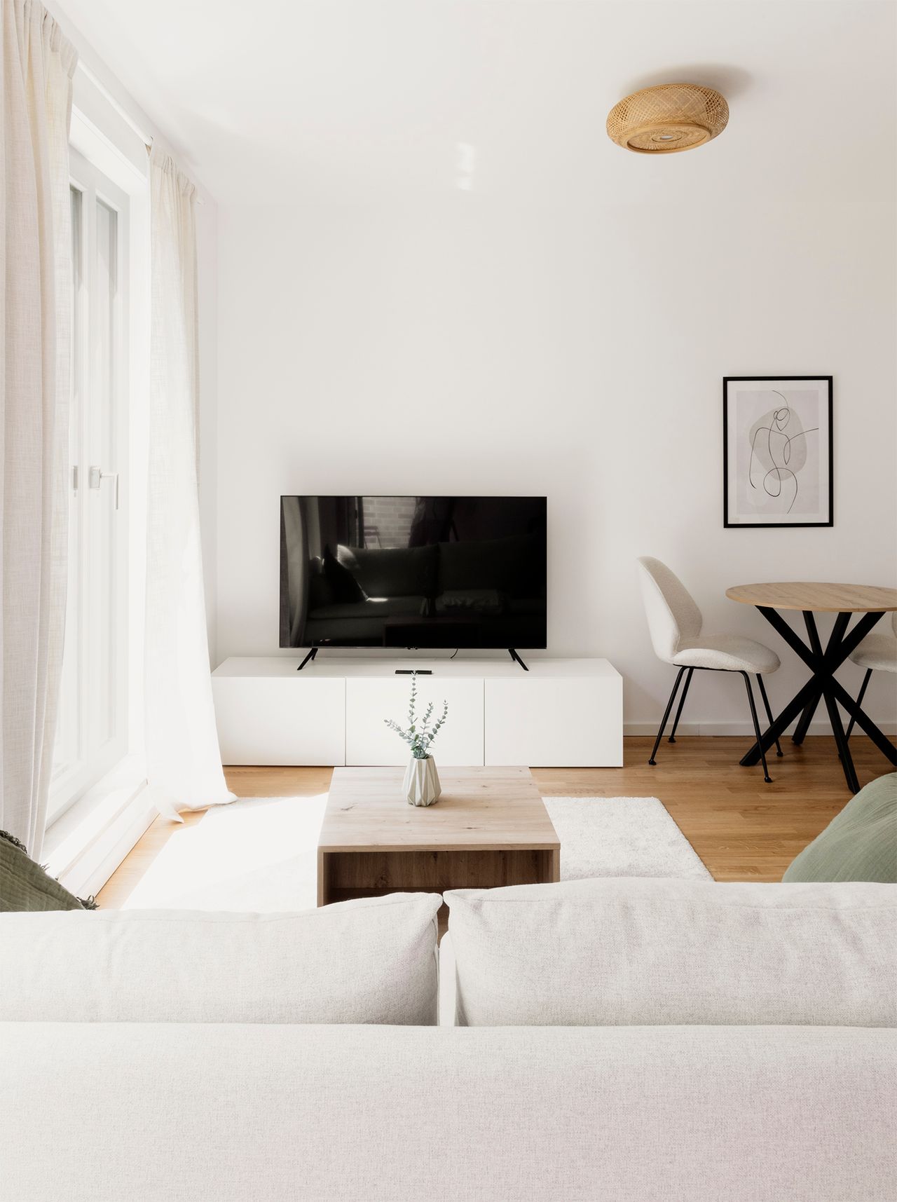 Features Spacious living/dining area - Floor-to-ceiling windows - Triple glazing - Electric exterior blinds - Multi-layer oak parquet flooring - Underfloor heating - Indirect ventilation - Villeroy & Boch and Kaldewei for tiles and sanitary products in the bathroom - Video intercom system - Entrance with transponder - Bicycle parking spaces in the basement and outside areas - Internet, WiFi - Fitted kitchen incl. all electrical appliances (fridge, oven, hob, dishwasher, extractor hood + kitchen...