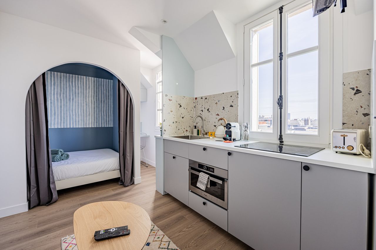 We offer this studio completely renovated, perfect for a single person or a young couple. This compact apartment has benefited from a complete and neat renovation. The intelligent layout of the space makes it possible to fully enjoy every square meter. The contemporary and refined decoration brings brightness and feeling of space. The studio includes a main room with sleeping area and living area, a modern equipped kitchenette (hob, refrigerator, storage), as well as a bathroom with toilet. Do...