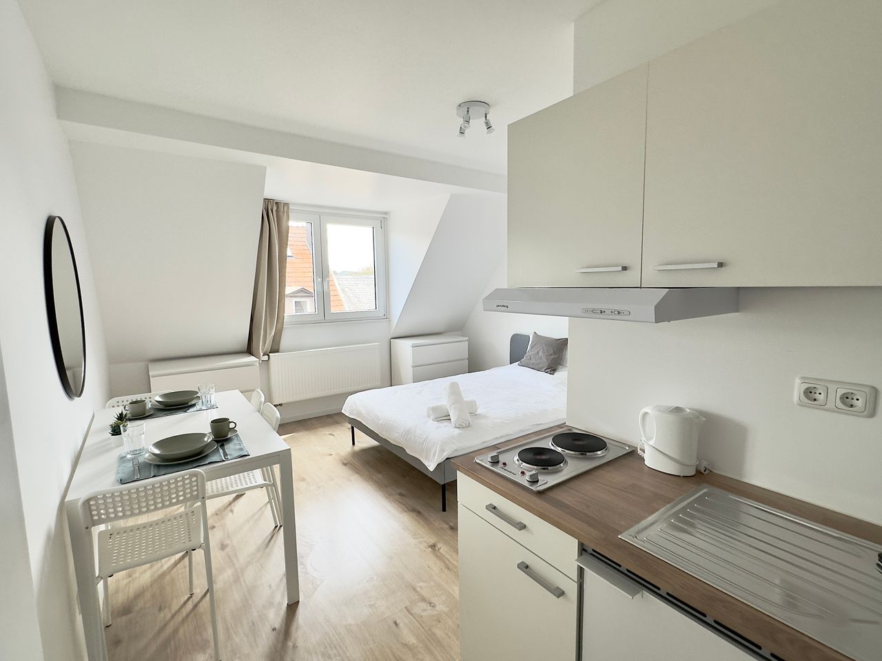 Newly renovated studio for rent! The studio is bright, fully furnished, and features a private bathroom equipped with a shower and toilet. Amenities include a comfortable bed, a spacious wardrobe, a dining area with a table and chairs, and a fully equipped kitchenette complete with a stove, refrigerator, cutlery, and crockery. For added convenience, communal washing machines and dryers that operate on a coin system are available on the ground floor. This is perfect for those who value privacy an...