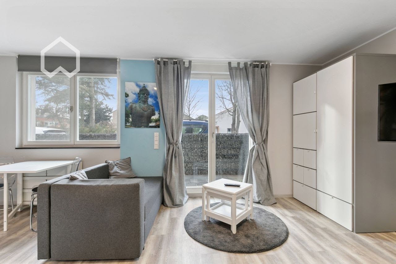 The fully furnished apartment has high quality equipment and a very good cut. The flooring of are equipped with design vinyl. In apartment there is a fully equipped kitchen with white surface, handle-free, in high gloss. The flexible kitchen table can be resized three times and with drawers can also be used as a desk or outside. Due to many glass surfaces, the apartment is bright and flooded with light. Curtains and drapes give the possibility of privacy and blackout. In the living area is a Ré...