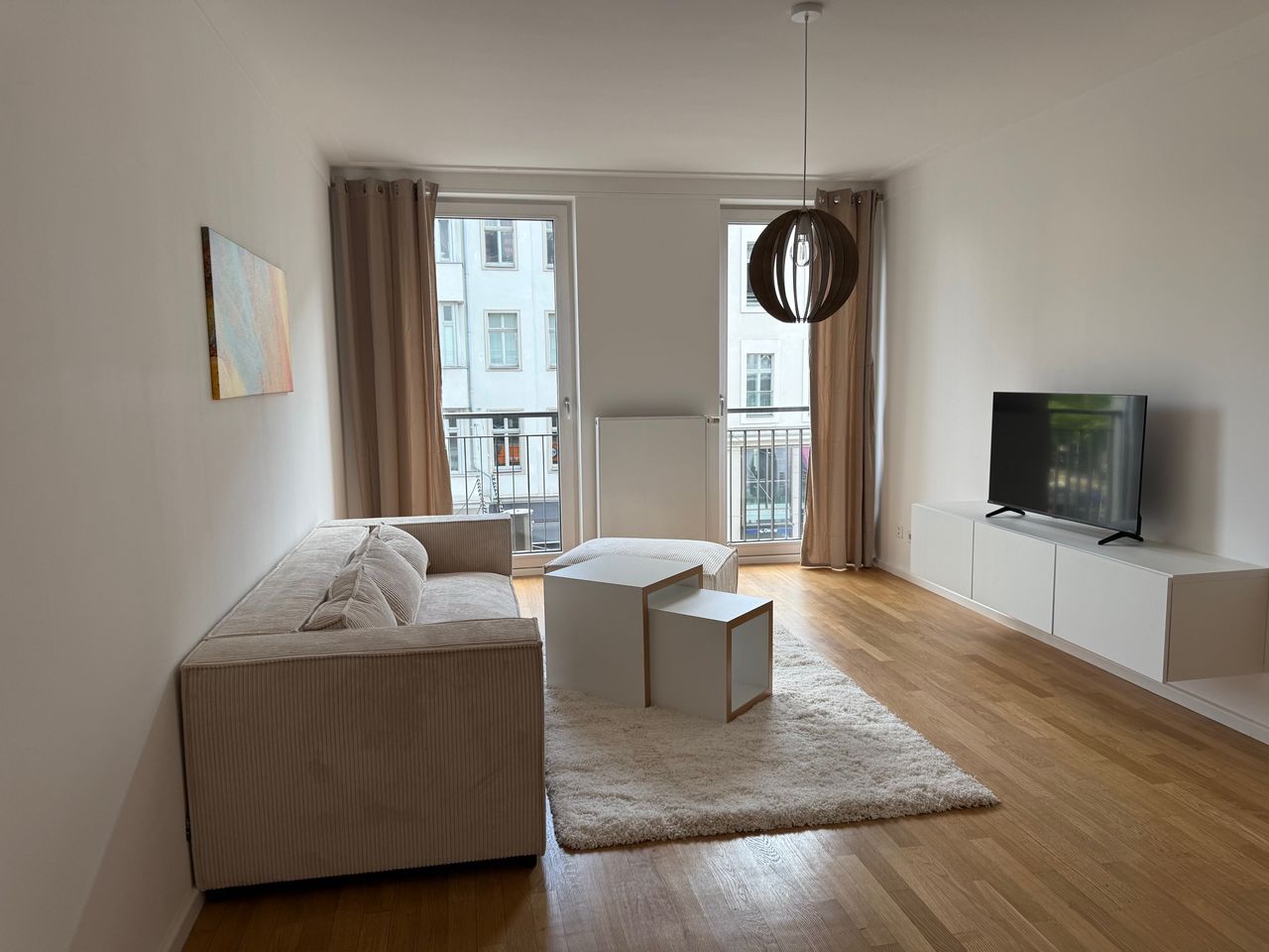 Diese neu möbilierte, helle 2-Raum Wohnung mit in der Friedrichstraße in Berlin Mitte befindet sich im 2. Obergeschoss und verfügt über eine Wohnfläche von ca. 54 qm. Die Wohnung ist sehr hell, da sie komplett mit bodentiefen Fenster ausgestattet ist. In dem geräumigen Schlafzimmer finden Sie neben dem großen Doppelbett auch genügend Stauraum in einem großen Kleiderschrank. In der Küche stehen Ihnen sämtliche Küchengeräte, von einer Spülmaschine, einem Kühlschrank, Gefrierschrank, einem Herd bis...