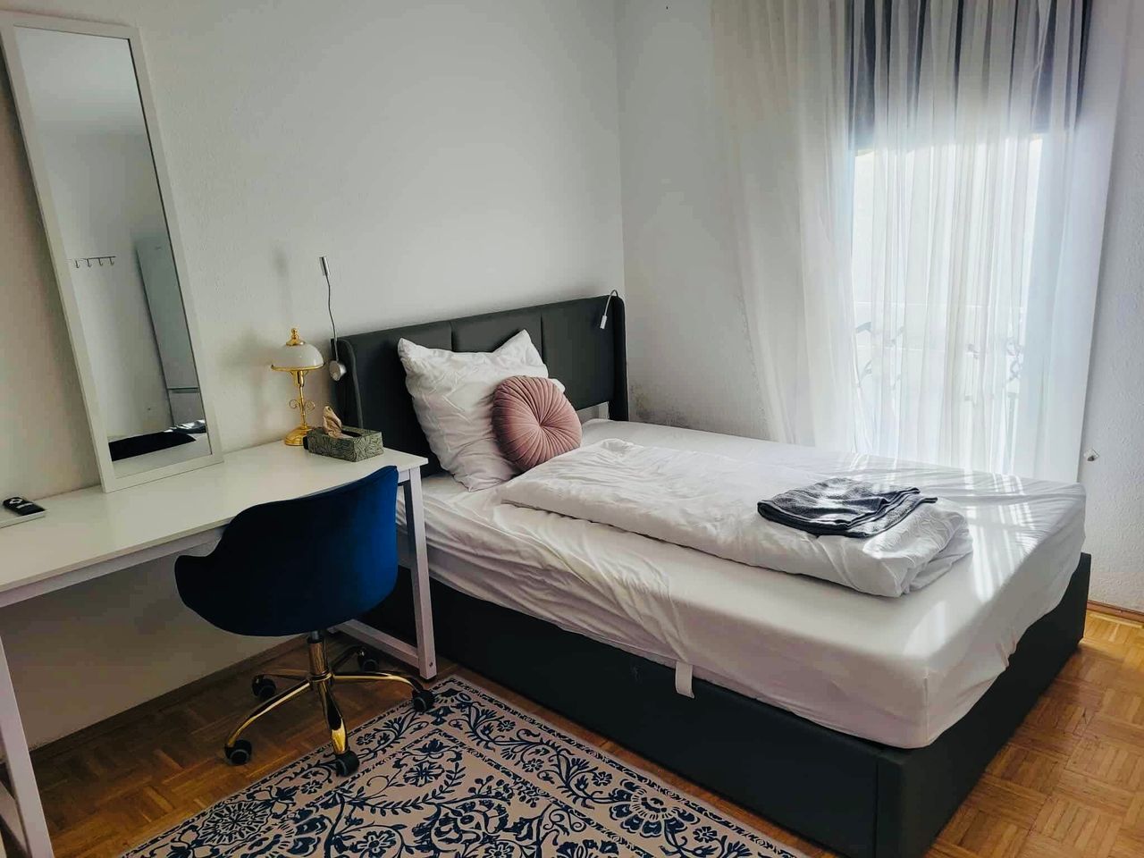 You rent here a nice furnish room with your own kitchen fridge tv desk double boxspring bed and a big window The apartment has 2 bathroom one is right on your right side room big corridor with main dinning table for all Teanants The apartment locate on the ground floor hochparterer building Bus Station is direct in front of the house