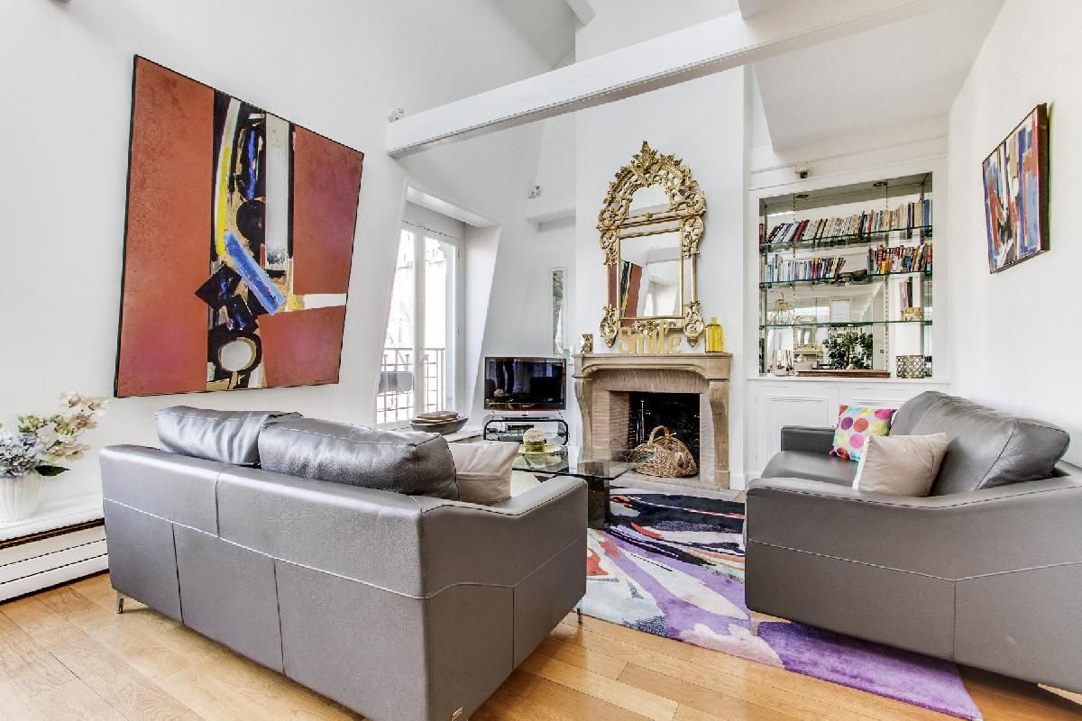 This romantic Paris luxury apartment rental offers the unique atmosphere of the Latin Quarter and is located on the topmost (6th) floor of a charming street in the fifth arrondissement. This elevator-accessed, beautiful, 125 sq. meter duplex offers fast Internet access, and air conditioning on both levels, and has a magical view of the Notre Dame and Paris monuments from the romantic terrace. First Level: Direct access to this luxury apartment in Paris is by a keyed private elevator, which wil...