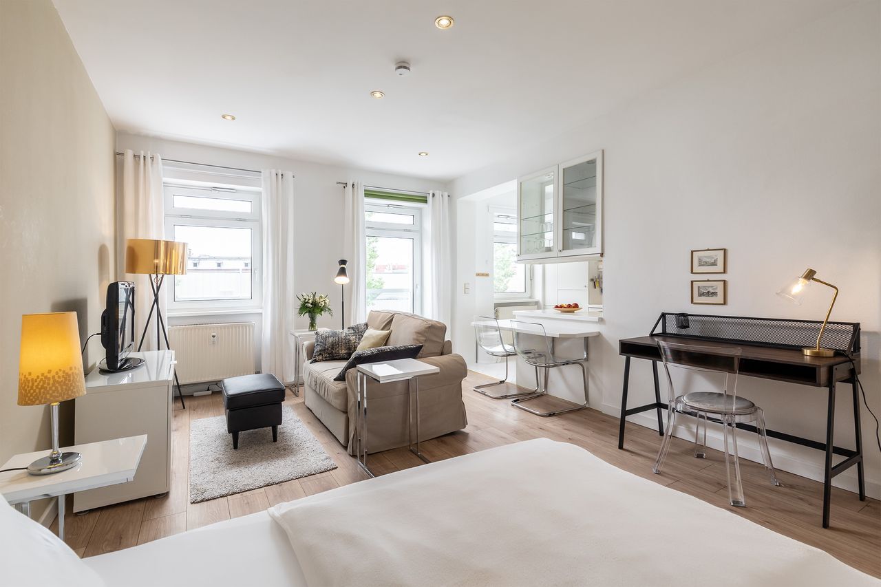 The rent also includes WLAN, cleaning once a month, GEZ fee, janitor service, personal support. Only electricity is charged extra according to your personal consumption Perfect location in the trendy Prenzlauer Berg district. Around the corner is the Kollwitzplatz, the Kastanienallee, the Wasserturm, the Kulturbrauerei and the famous Mauerpark. It is only a 5 minute walk to the underground station Eberswalder Strasse. From here you can quickly get to the Alexanderplatz or to all other directi...