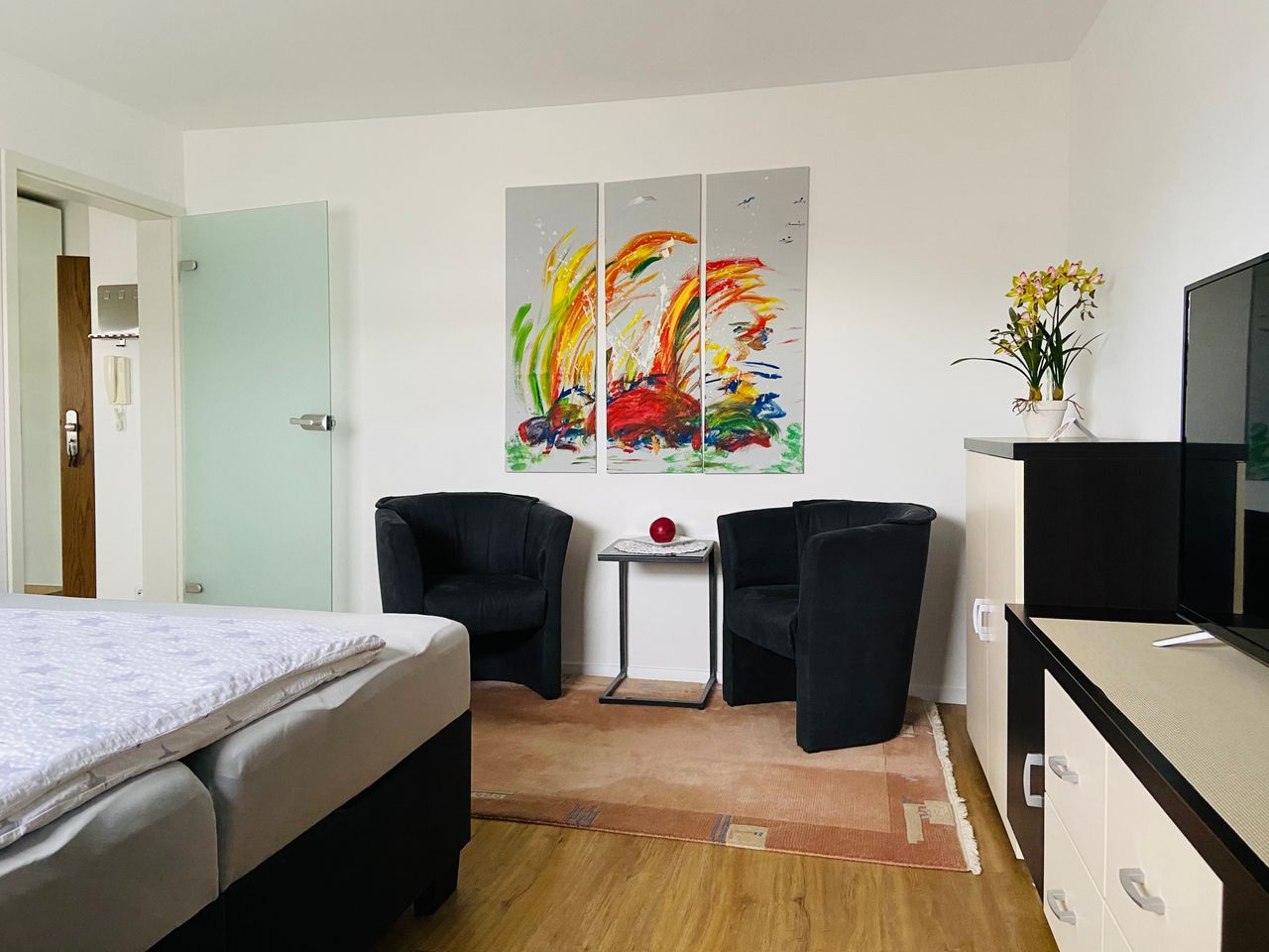 Modernes, attraktives Appartement in ruhiger, zentraler Lage nahe dem Flughafen und der Messe Düsseldorf. Sehr verkehrsgünstig gelegen (mit dem Auto benötigen Sie 2 Minuten zu den Autobahnen A3 und A44, 10 Minuten zum Flughafen Düsseldorf, 15 Minuten zur Messe Düsseldorf und 25 Minuten zur Messe Essen). Das Stadtzentrum von Ratingen erreichen Sie in etwa 15 Minuten. Der Bahnhof Ratingen-Ost ist in 10 Minuten zu Fuß zu erreichen, Restaurants und Einkaufsmöglichkeiten befinden sich in unmittelbare...
