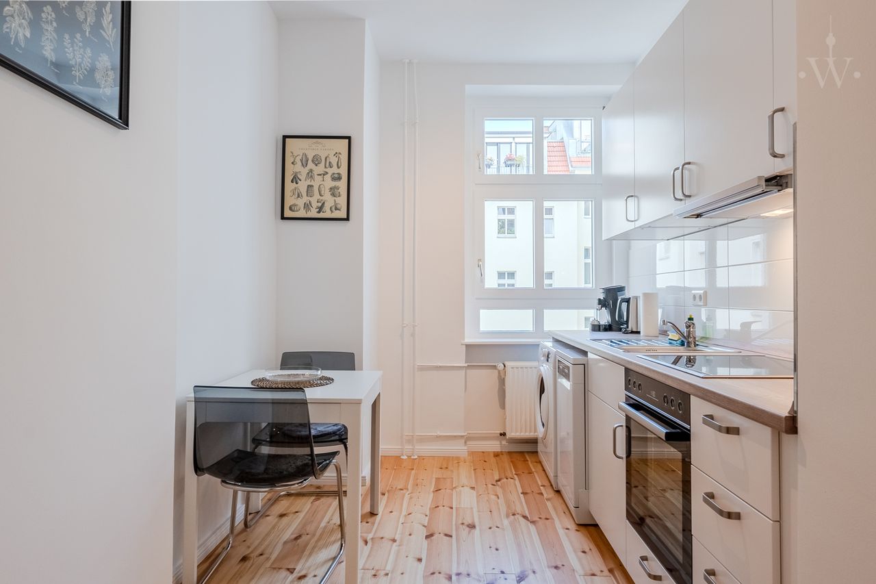 This great flat is located in the middle of Berlin's Wedding district. A diverse cultural and culinary offer as well as numerous green recreational areas characterise this location. Of course, due to the central location, you are optimally connected to the public transport network by the underground station Seestraße and the bus lines 120, 106, M13 and M50 and can reach many parts of the city without major detours.