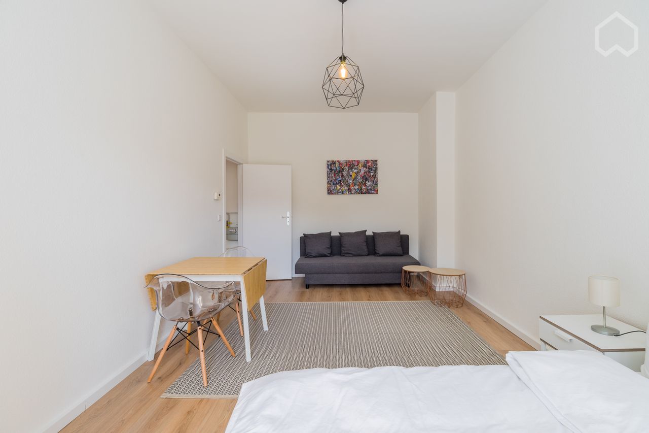 This bright studio apartment is located on the 4th floor of a well-kept house. The apartment has been recently renovated and has a modern bathroom, a fully equipped kitchen, and a spacious living/bedroom. The apartment has everything you need for a pleasant stay, including bed linen and towels. It is a good layout with a good use of space. The building is located in a quiet residential street and is in good condition. The Wundstraße is located in the beautiful district of Charlottenburg. Cha...