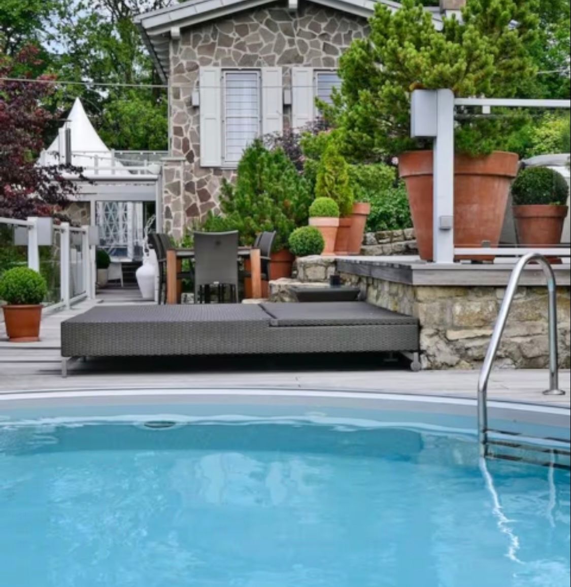 Die Finca ist sehr idyllisch gelegen. Viva La Dolce Vita. Gardasee Feeling- mitten im Steigerwald, nur 10 Autominuten von der Landeshauptstadt Erfurt entfernt. Die Exklusive Ausstattung mit hochwertigen Materialien und der freie Blick auf die 3 Gleichen ist einzigartig. Das Waldhaus ist 15 Fussminuten entfernt und läd mit leckeren Speisen und selbstgebrauten Bier zum Verweilen ein. Dort fährt auch ein Bus nach Erfurt. Der Barbeque Grill rundet jede Party ab und der große Pool und der Jakuzie, ...
